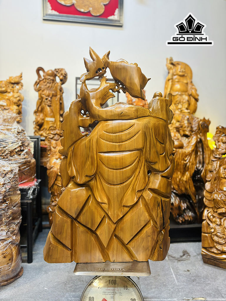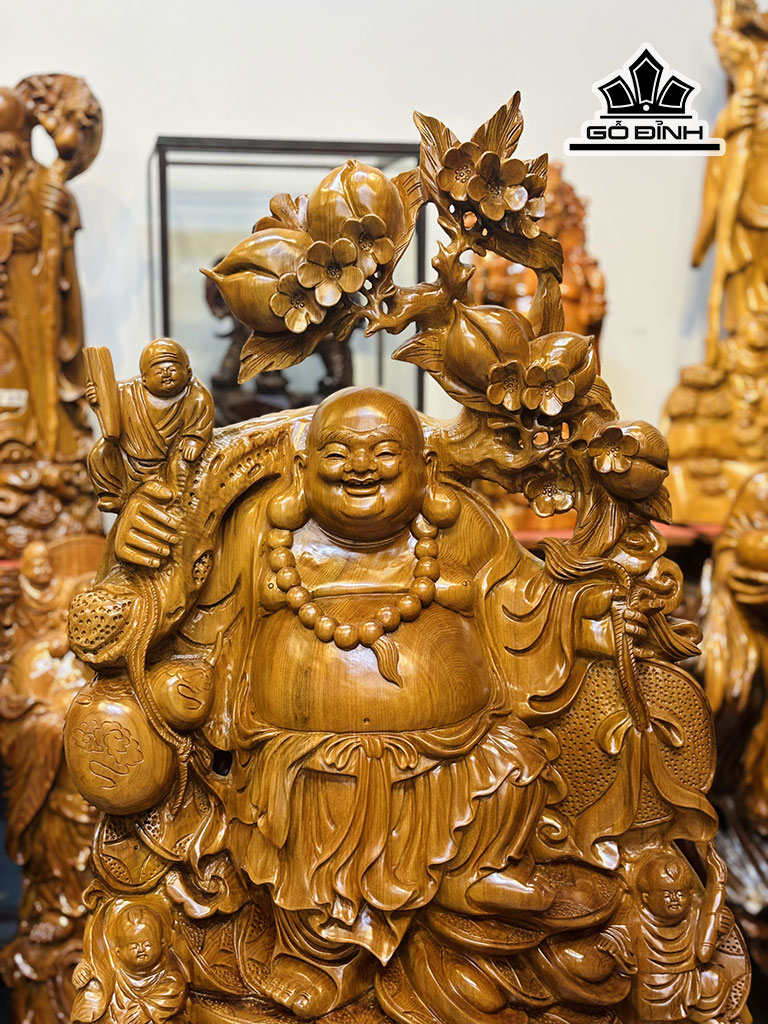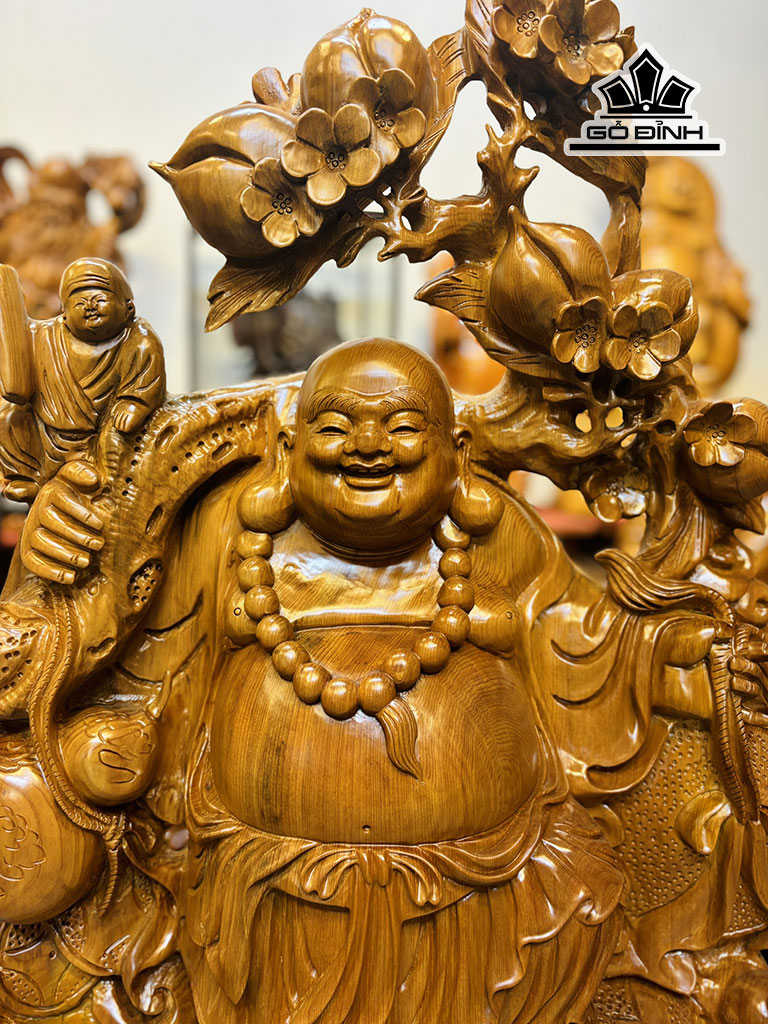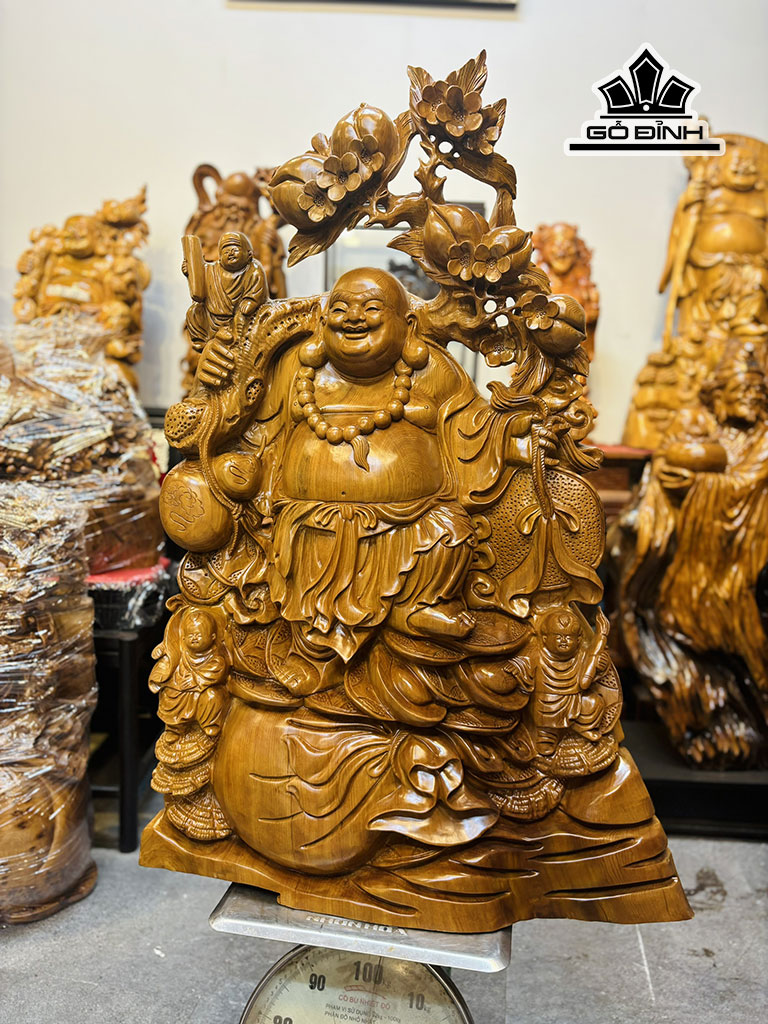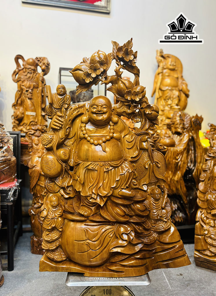 Tượng Phật Di Lặc Tam Phúc Gỗ Ngọc Am Cao 95 Ngang 63 Sâu 18 (cm) - 34kg