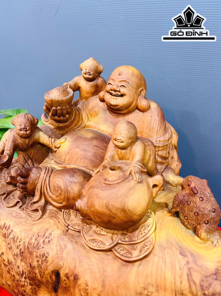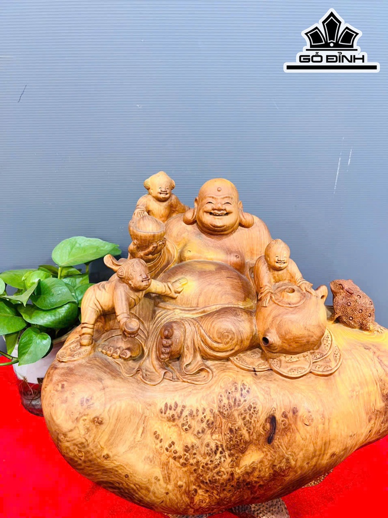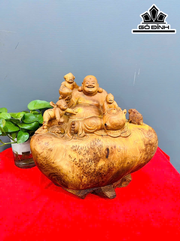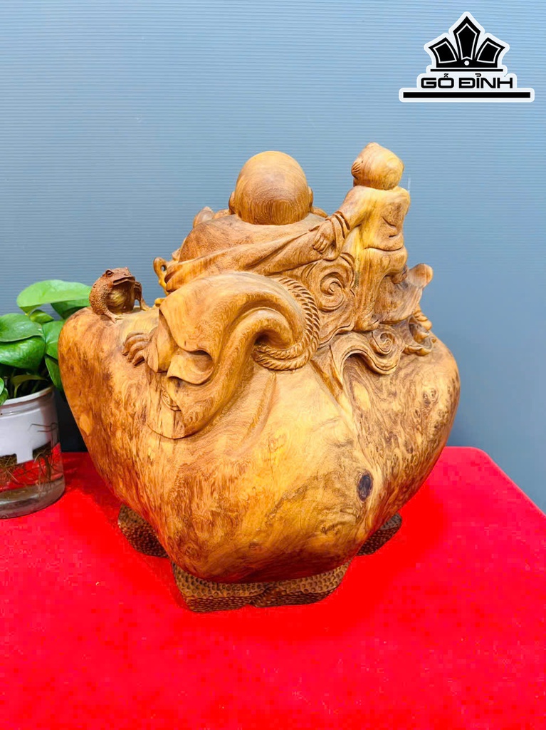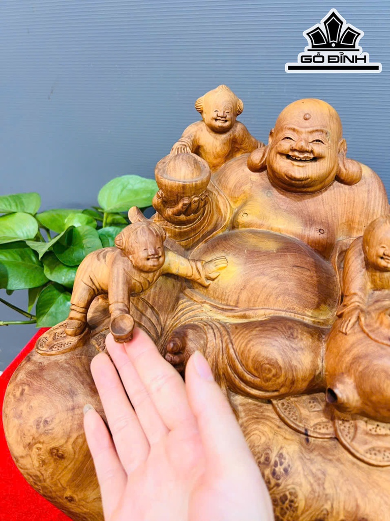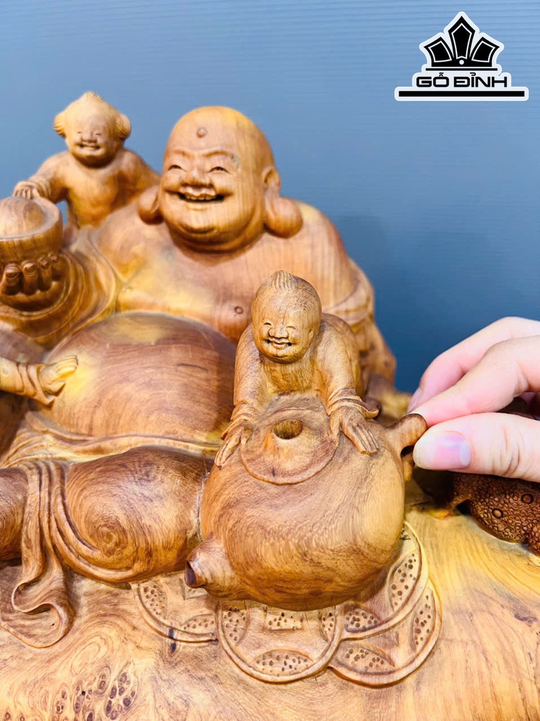 Tượng Phật Di Lặc Tam Phúc Gỗ Nu Hương Cao 36 Ngang 37 Sâu 29 (cm)