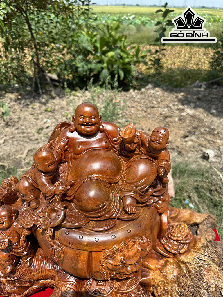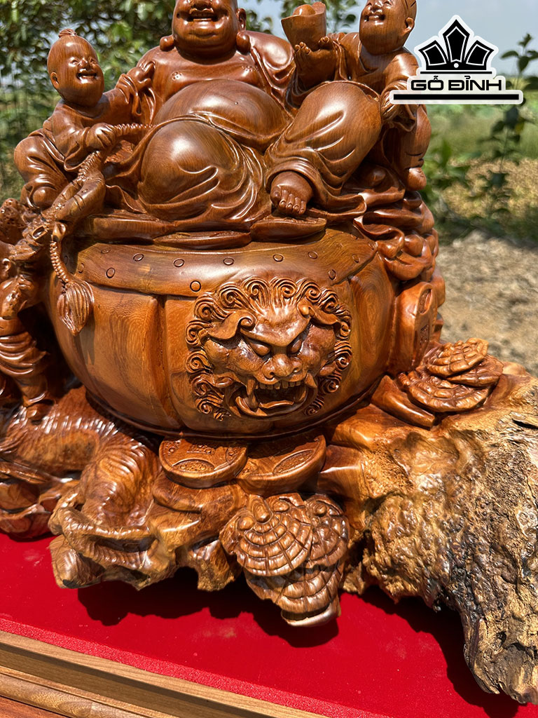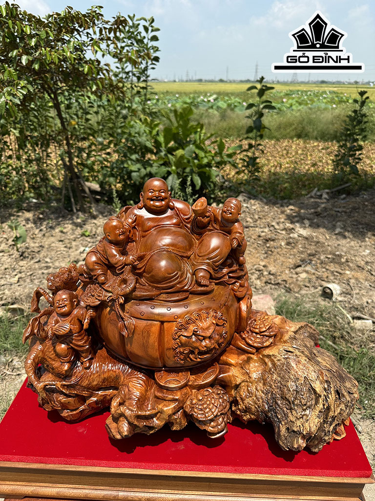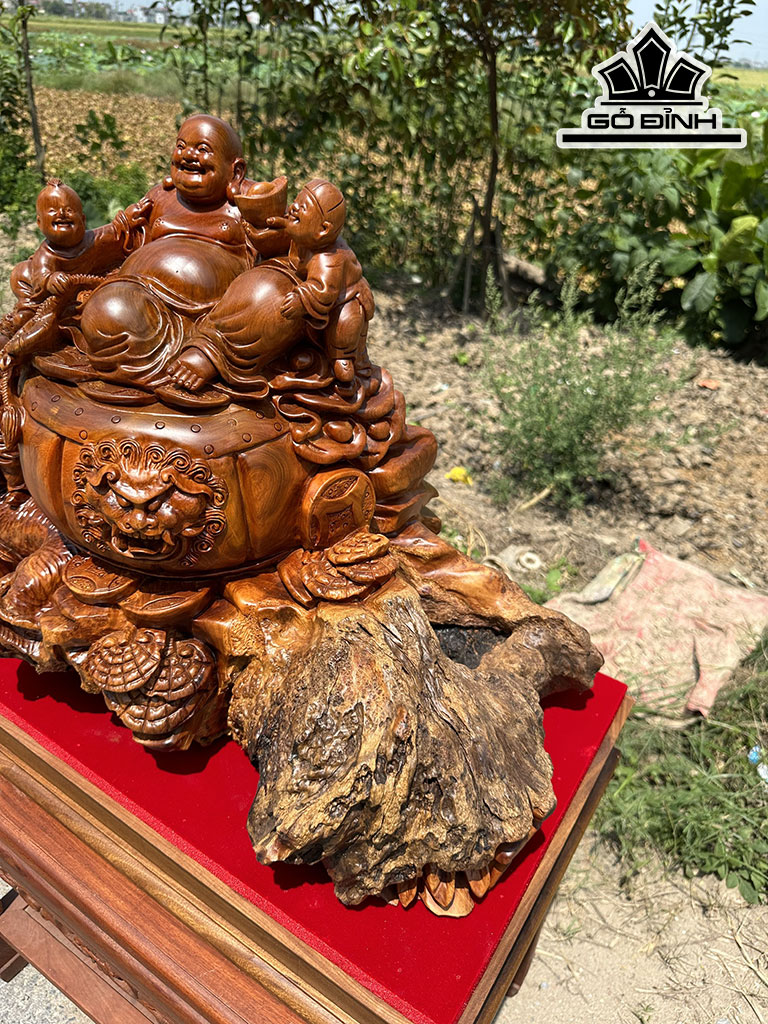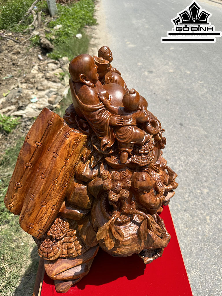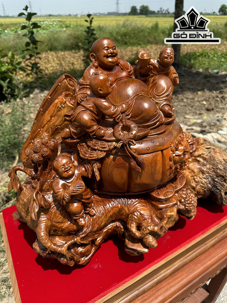 Tượng Phật Di Lặc Tam Phúc Gỗ Nu Hương Cao 40 Ngang 62 Sâu 35 (cm)