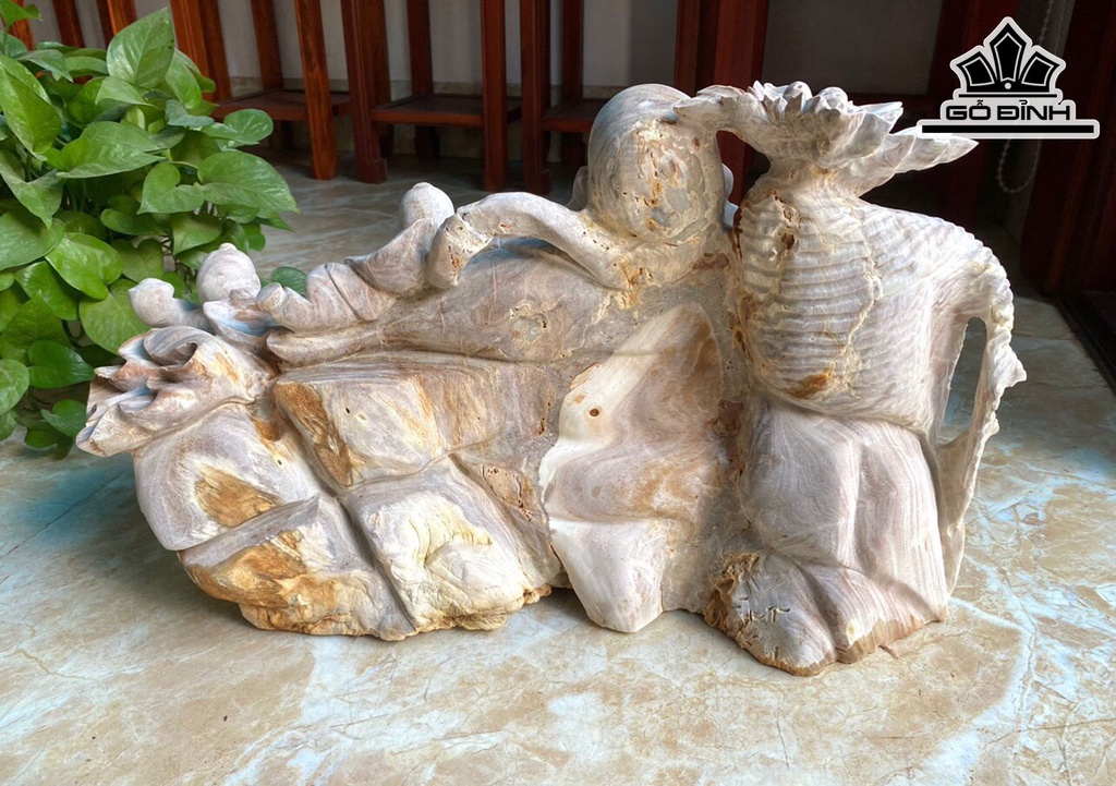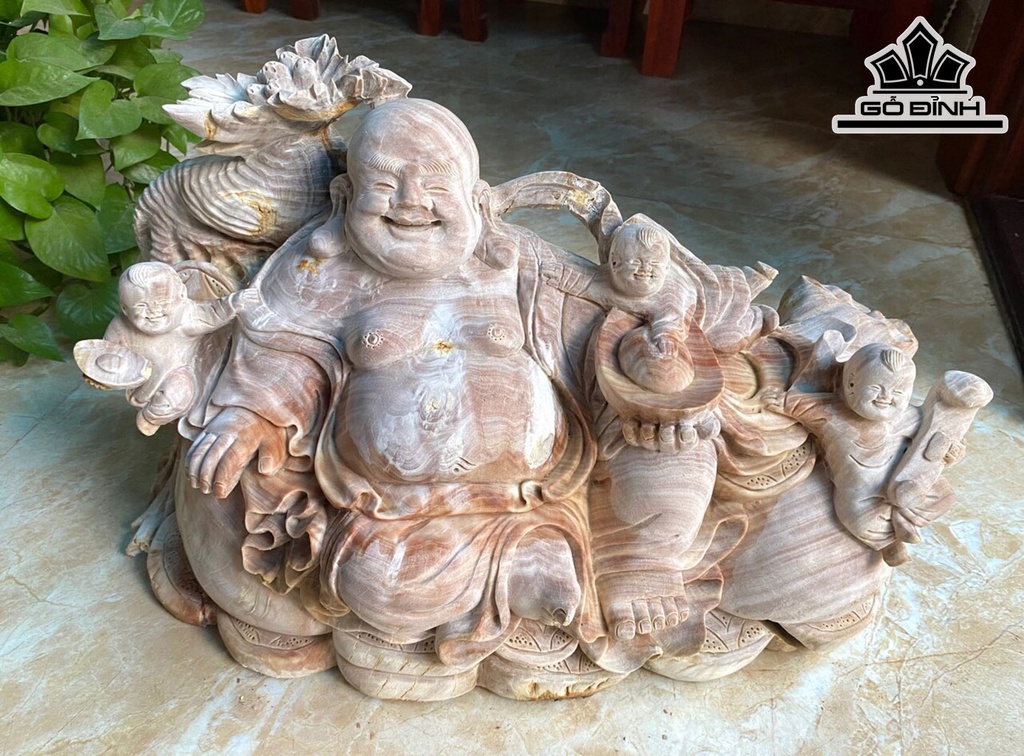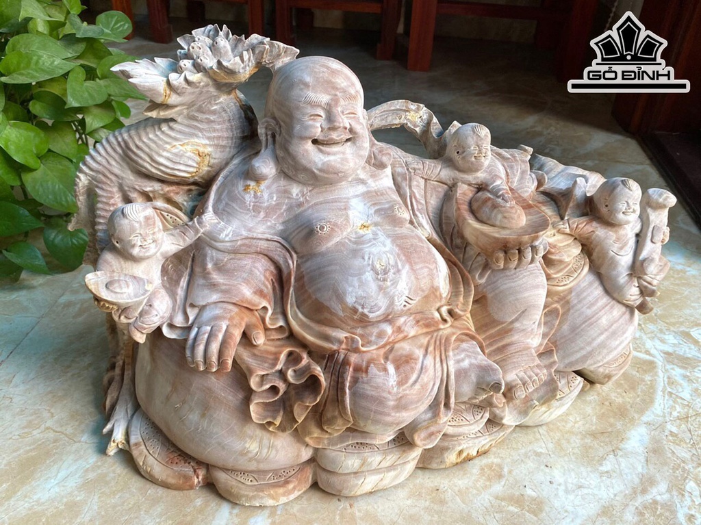 Tượng Phật Di Lặc Tam Phúc Gỗ Nu Nghiến Cao 31 Ngang 52 Sâu 26 (cm)