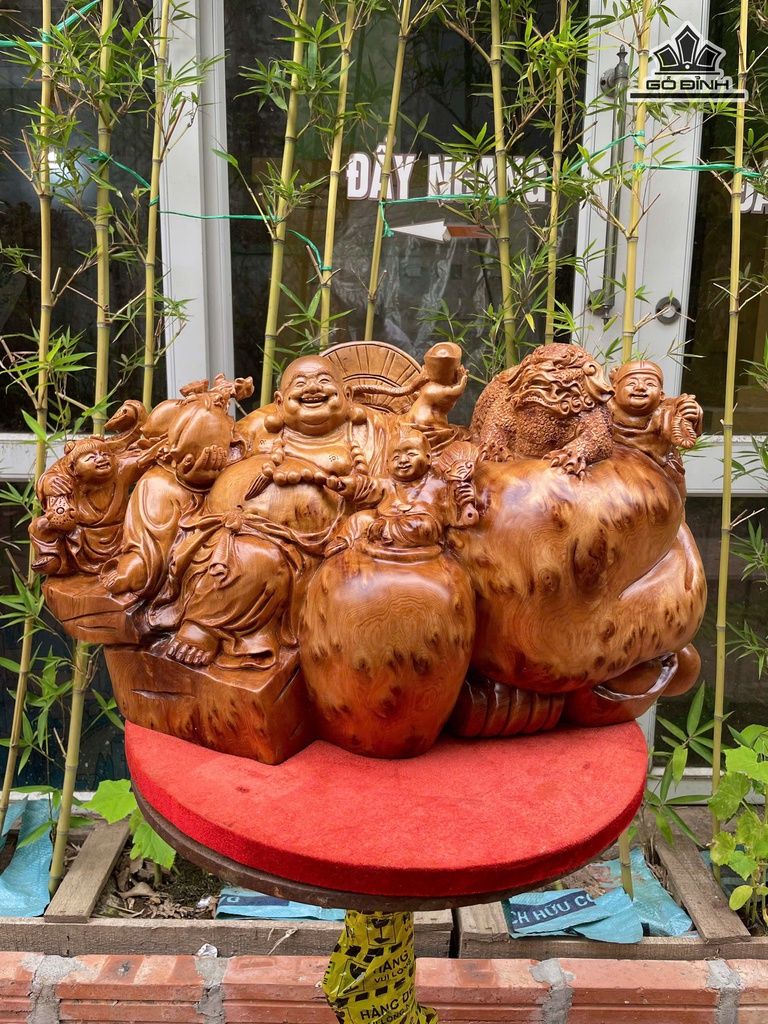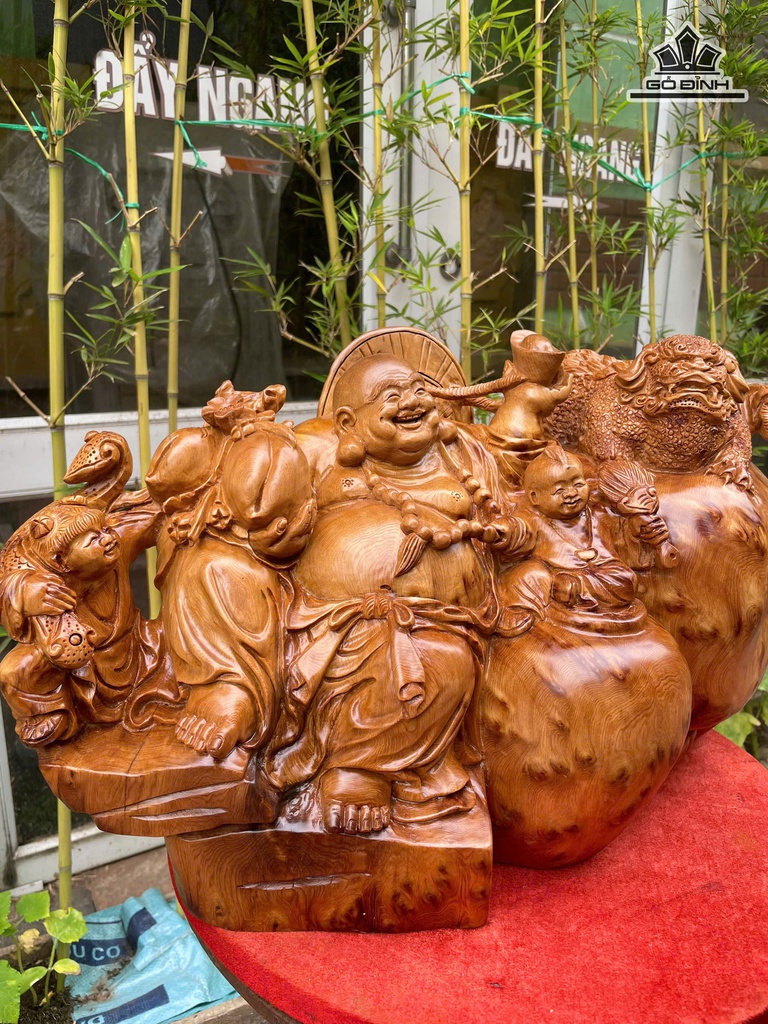 Tượng Phật Di Lặc Tam Phúc Gỗ Nu Ngọc Am Cao 28 Ngang 55 Sâu 24 (cm)
