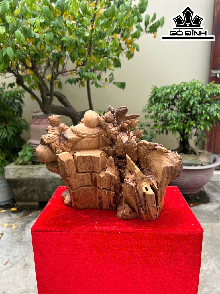 Tượng Phật Di Lặc Tam Phúc Gỗ Nu Ngọc Am Cao 42 Ngang 55 Sâu 38 (cm)