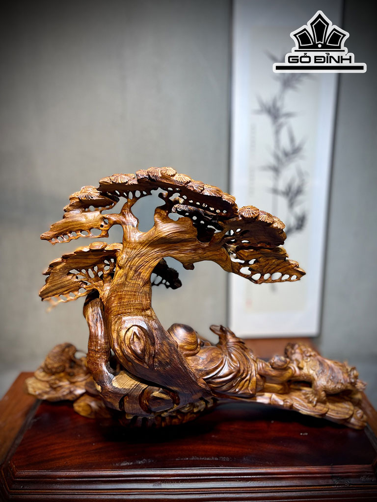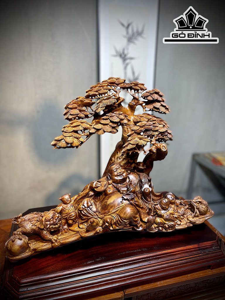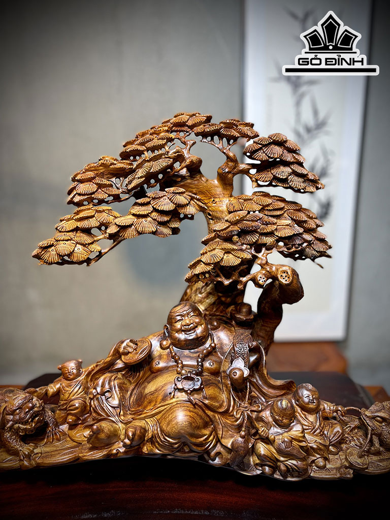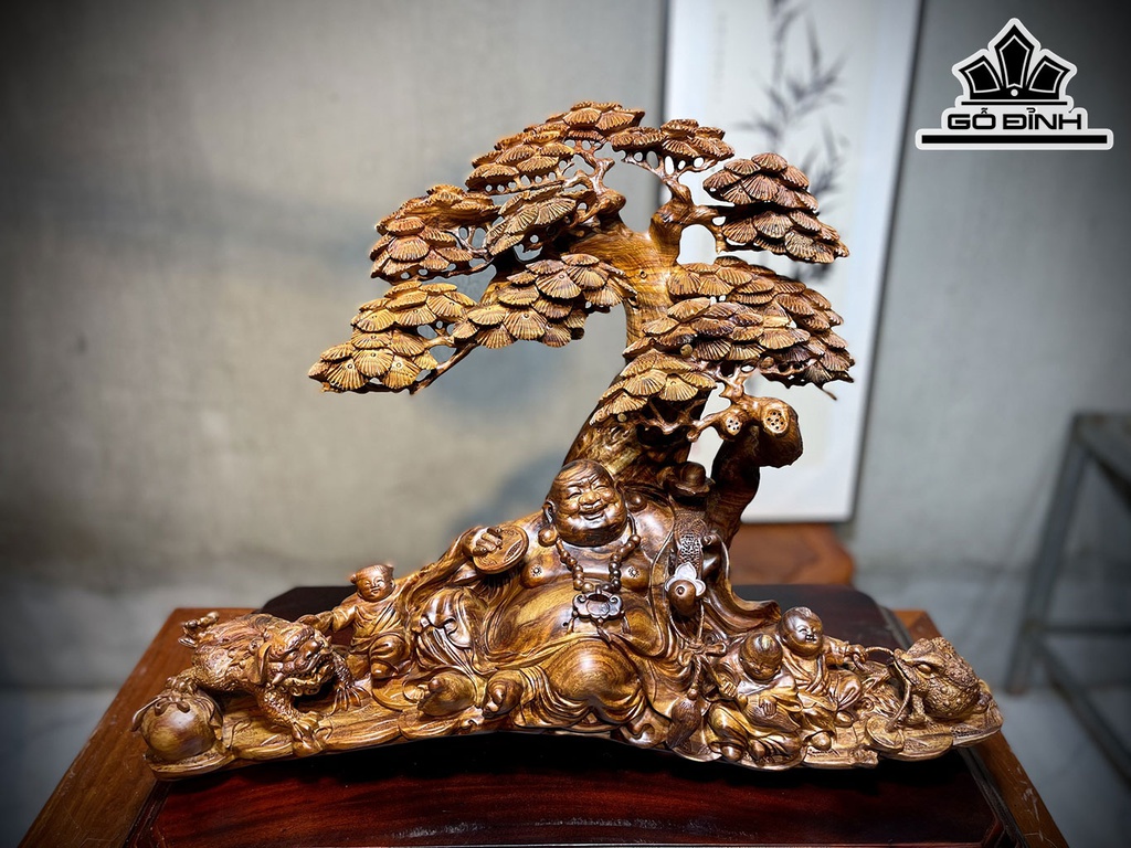 Tượng Phật Di Lặc Tam Phúc Gỗ Sưa Cao 60 Ngang 42 Sâu 25 (cm)
