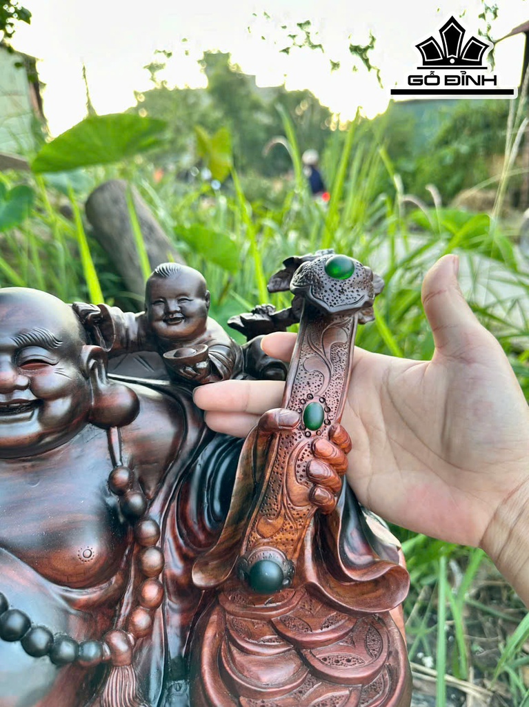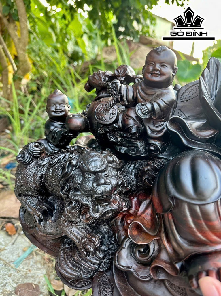 Tượng Phật Di Lặc Tam Phúc Gỗ Trắc Cao 31 Ngang 62 Sâu 22 (cm) - 17kg