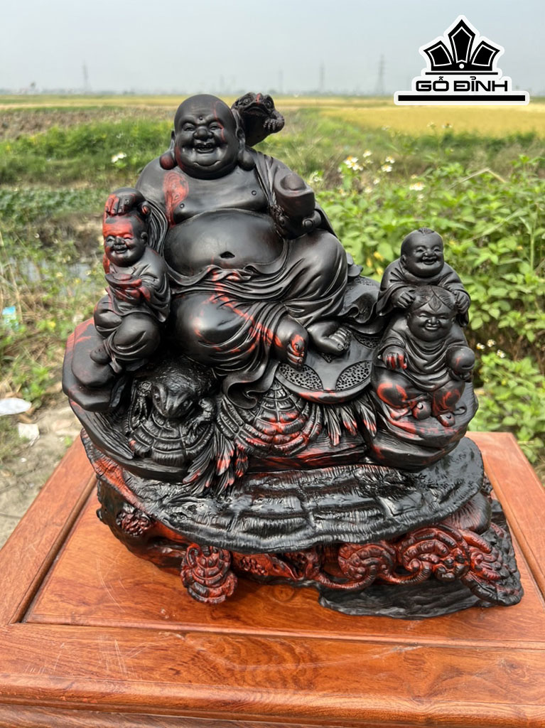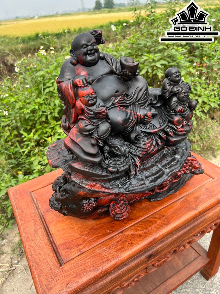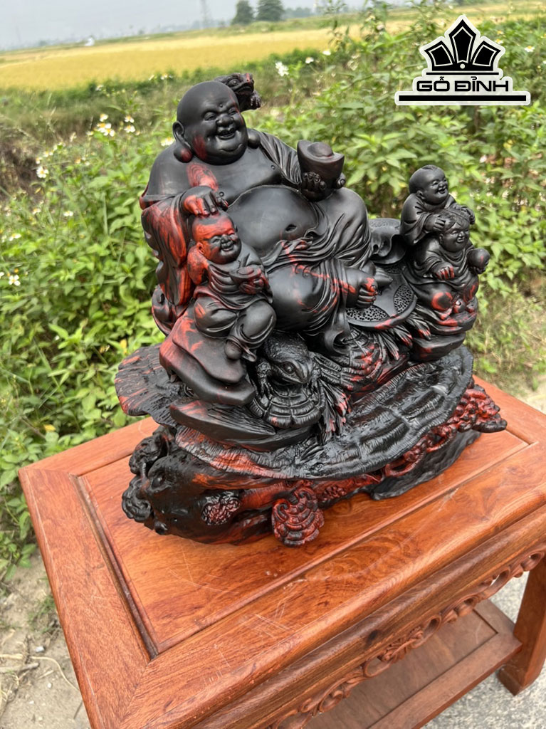 Tượng Phật Di Lặc Tam Phúc Gỗ Trắc Cao 41 Ngang 44 Sâu 24 (cm)
