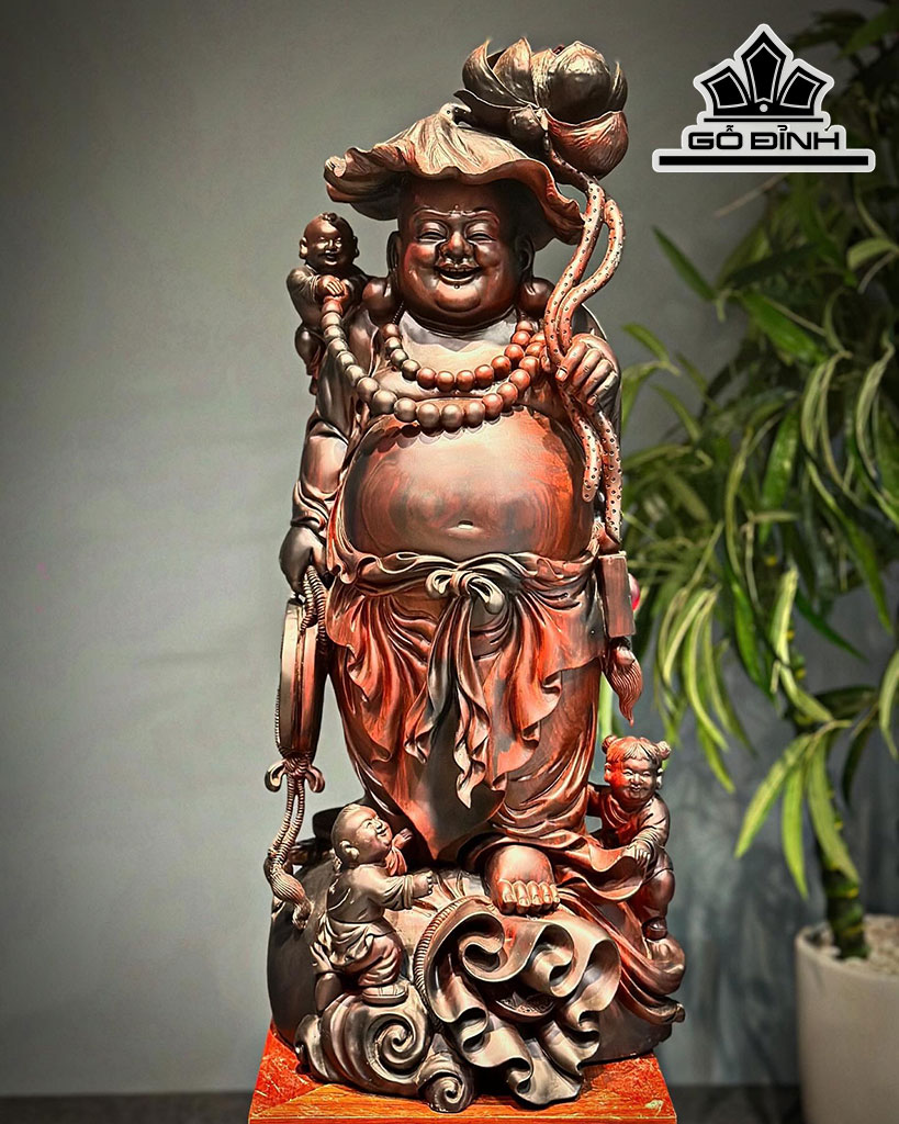 Tượng Phật Di Lặc Tam Phúc Gỗ Trắc Cao 77 Ngang 32 Sâu 22 (cm)