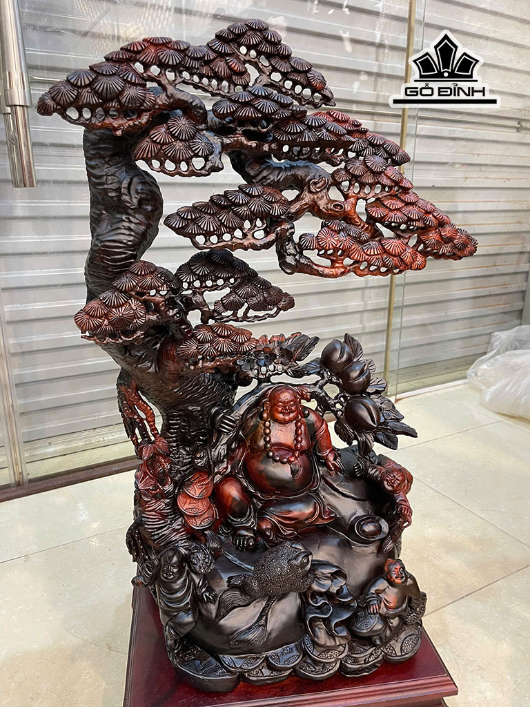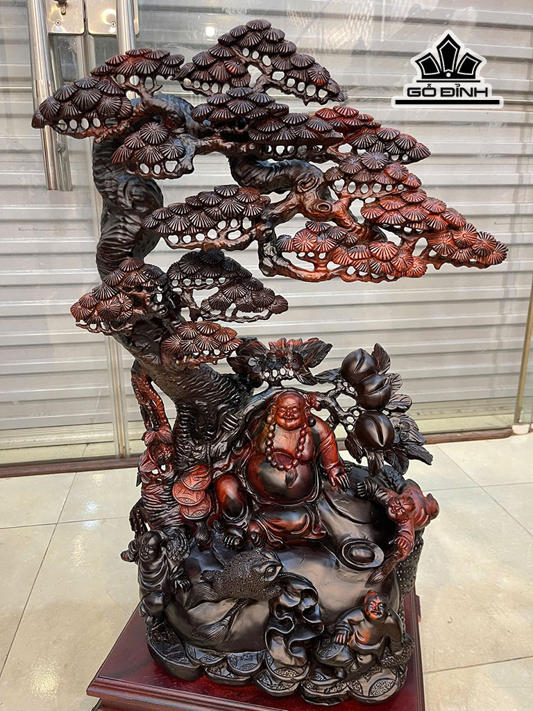 Tượng Phật Di Lặc Tam Phúc Gỗ Trắc Cao Cả Kỷ 90 - Kỷ Cao 10 - Ngang 52 Sâu 31 (cm)
