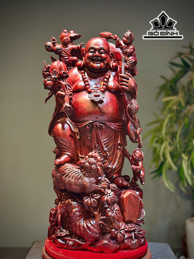 Tượng Phật Di Lặc Tam Phúc Gỗ Tử Đàn Cao 84 Ngang 38 Sâu 34 (cm)