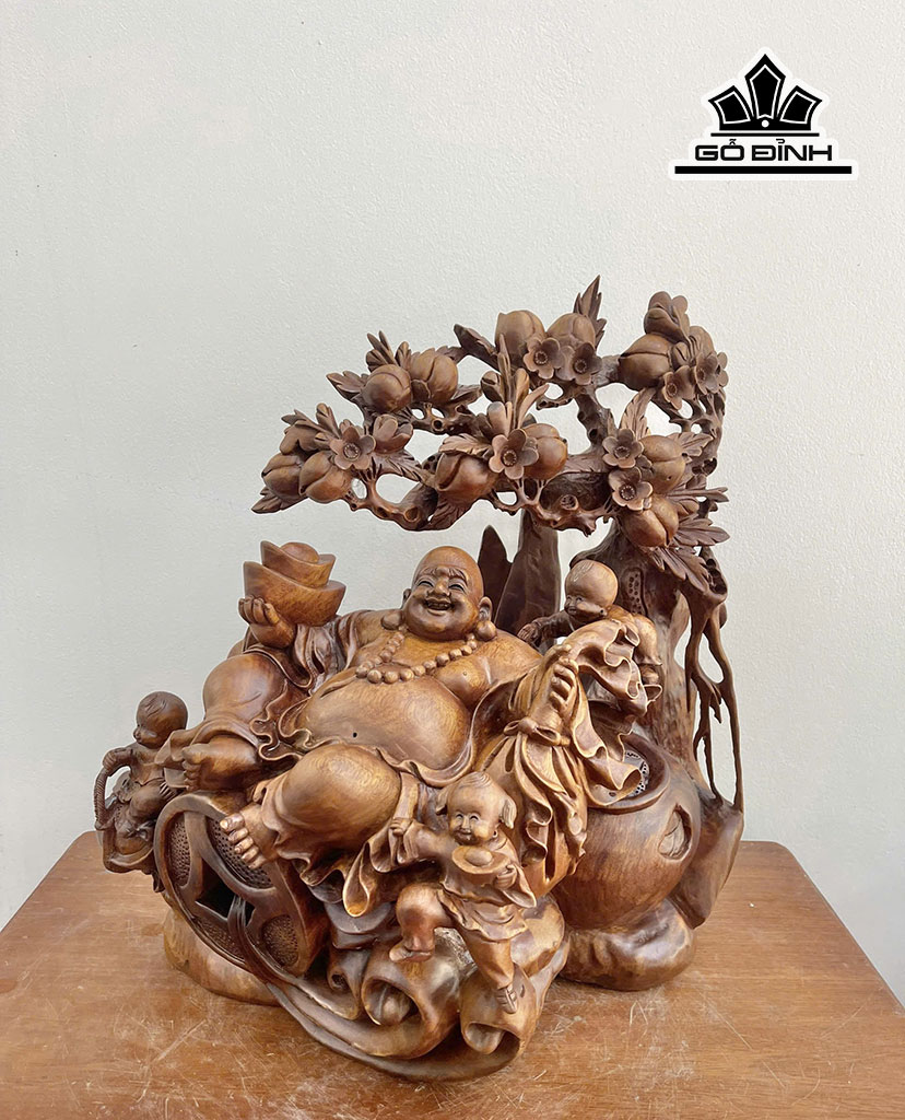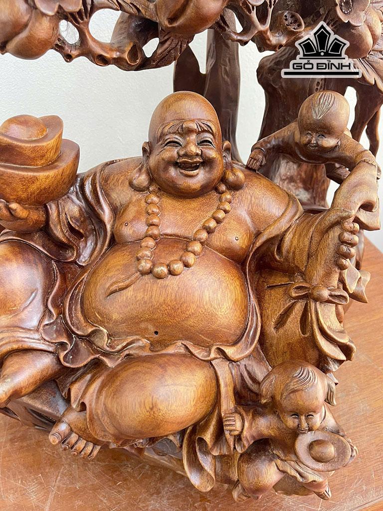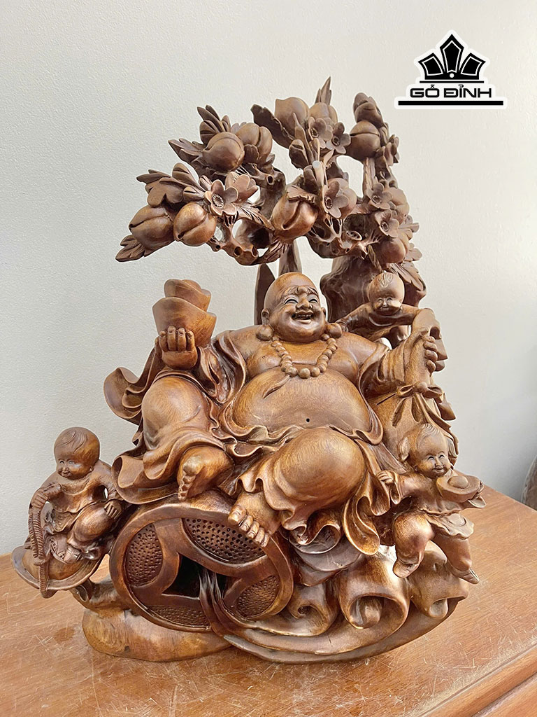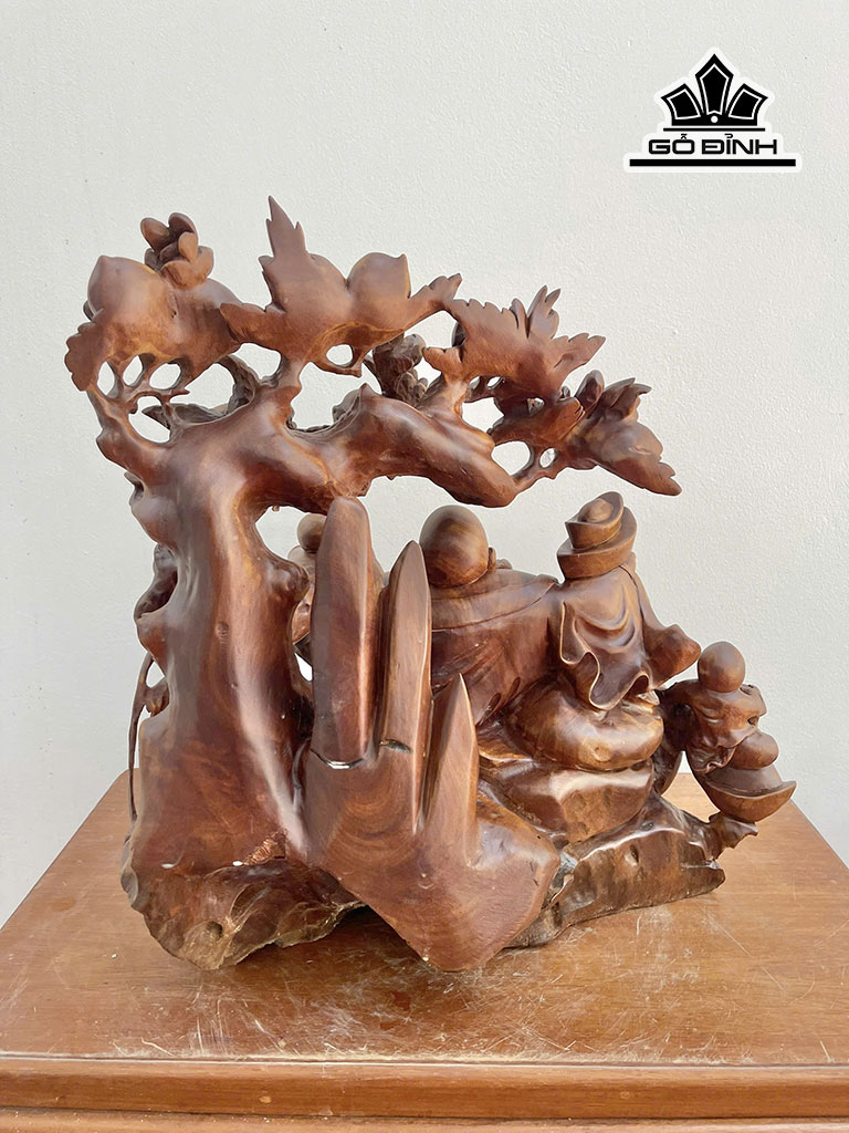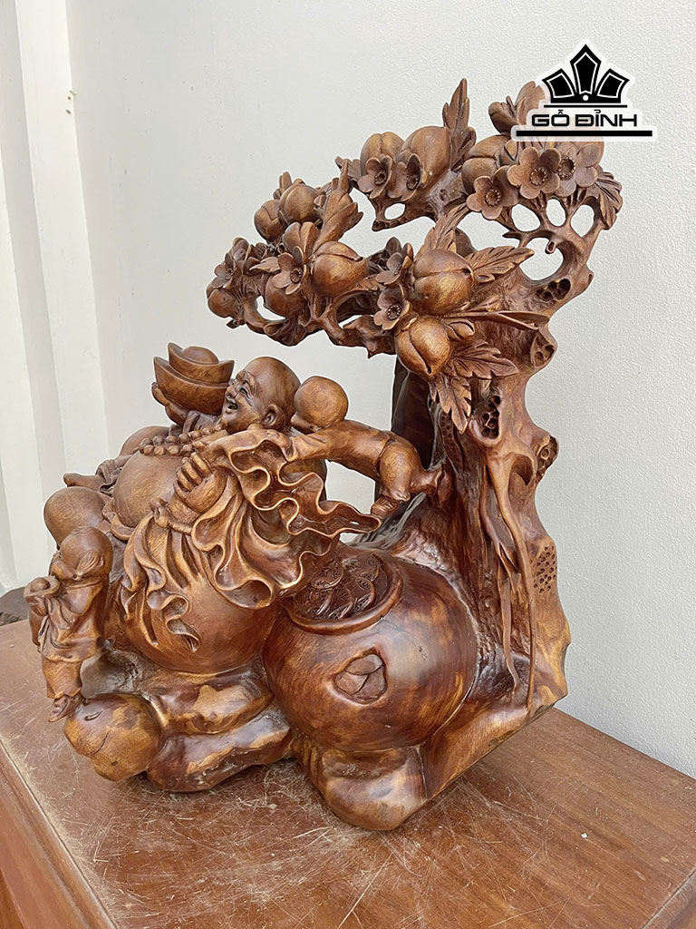 Tượng Phật Di Lặc Tam Phúc Gỗ Xá Xị Cao 55 Ngang 50 Sâu 36 (cm)