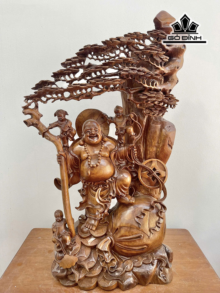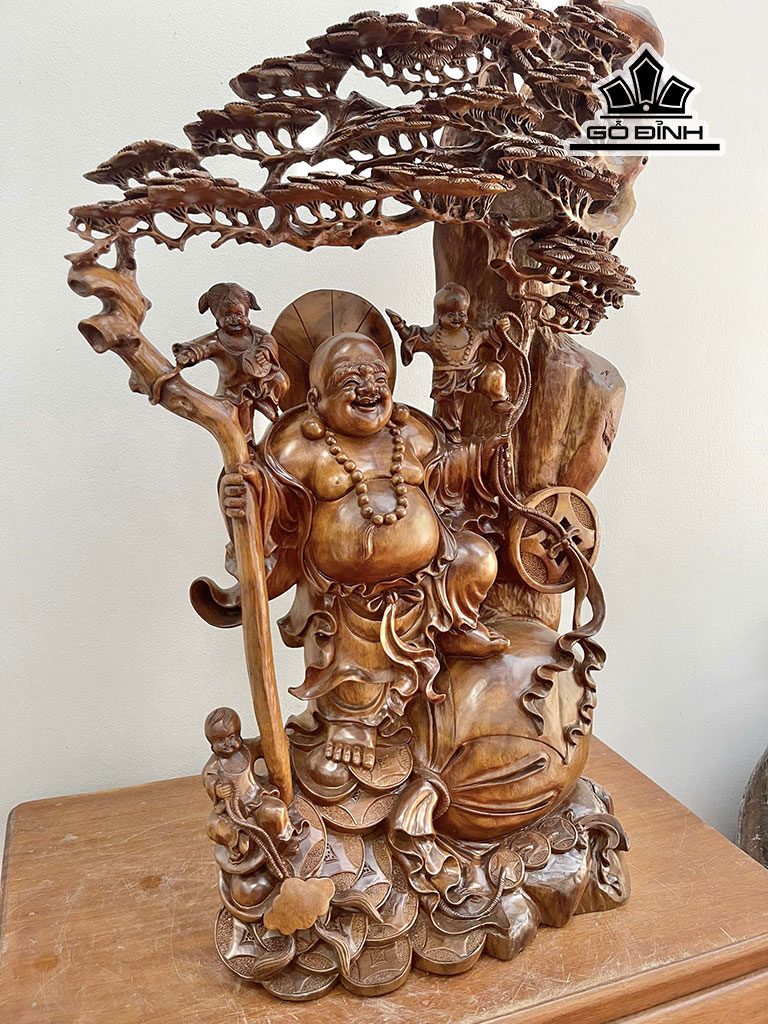 Tượng Phật Di Lặc Tam Phúc Gỗ Xá Xị Cao 90 Ngang 52 Sâu 22 (cm)