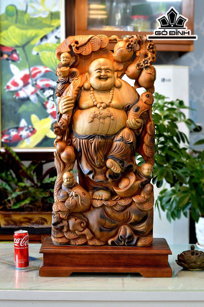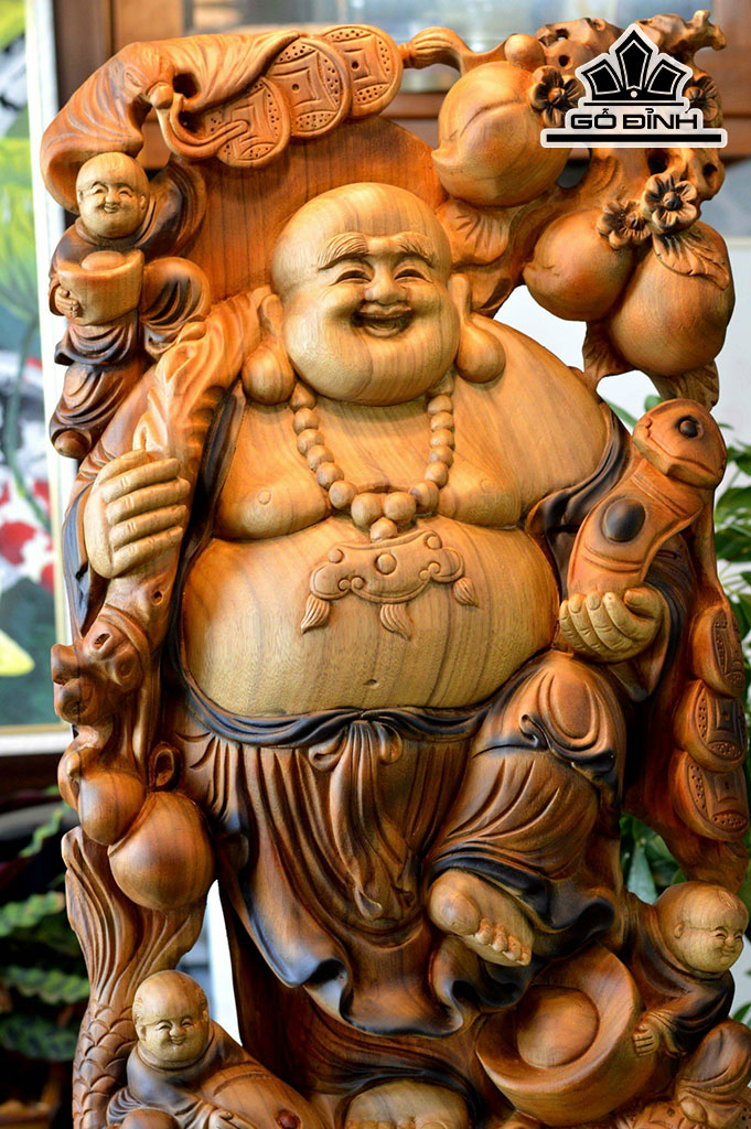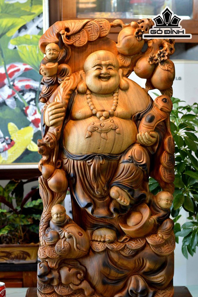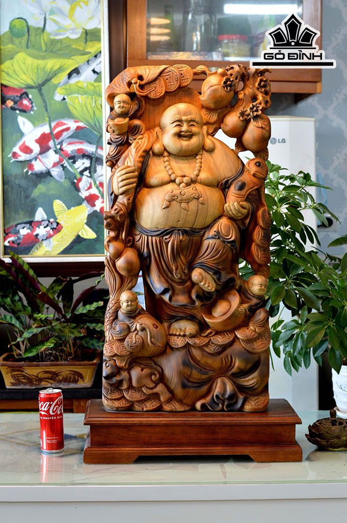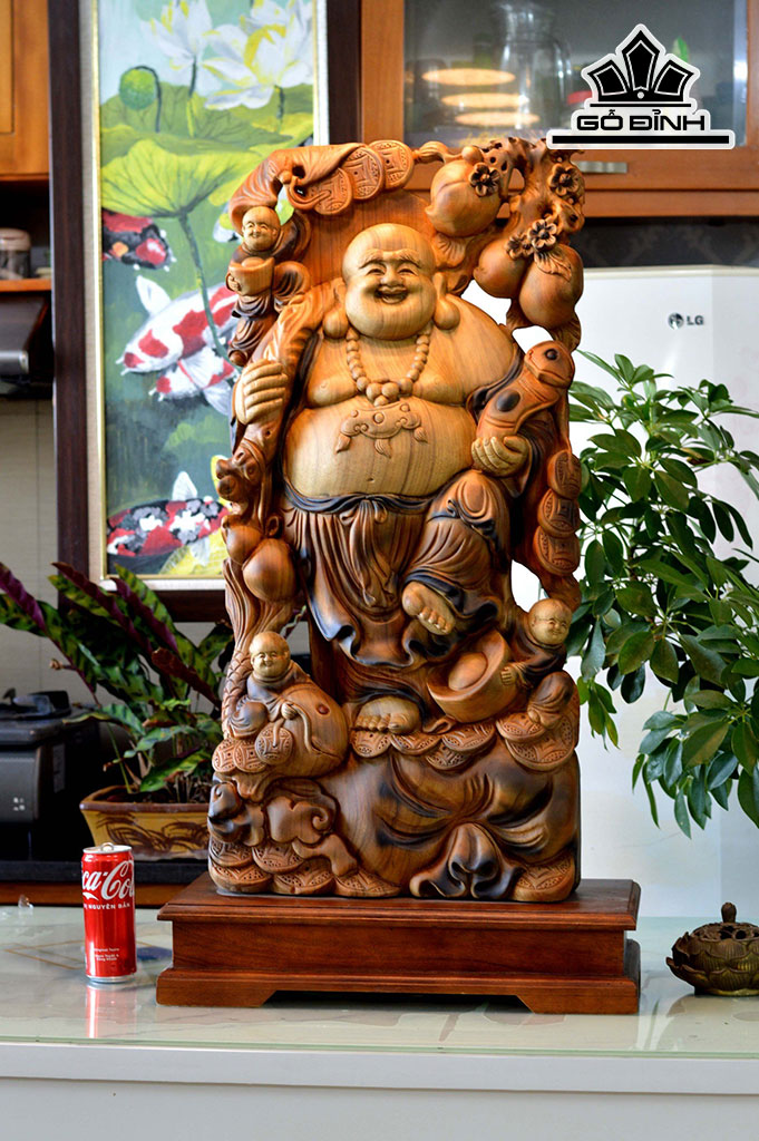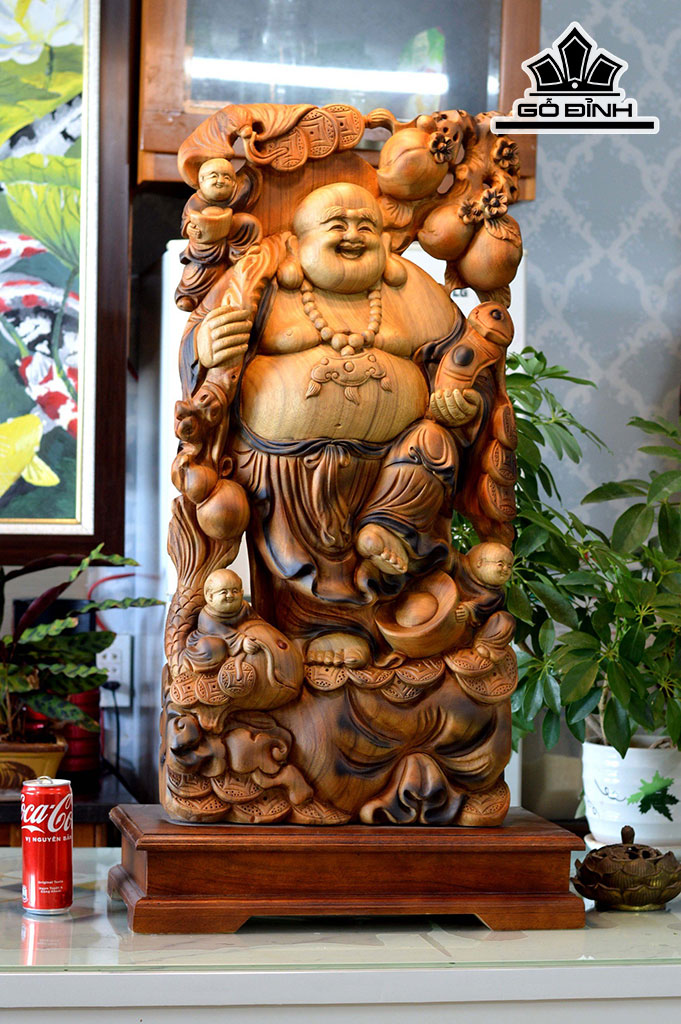 Tượng Phật Di Lặc Tam Phúc Gỗ Xá Xị Cao 92 Ngang 39 Sâu 15 (cm)