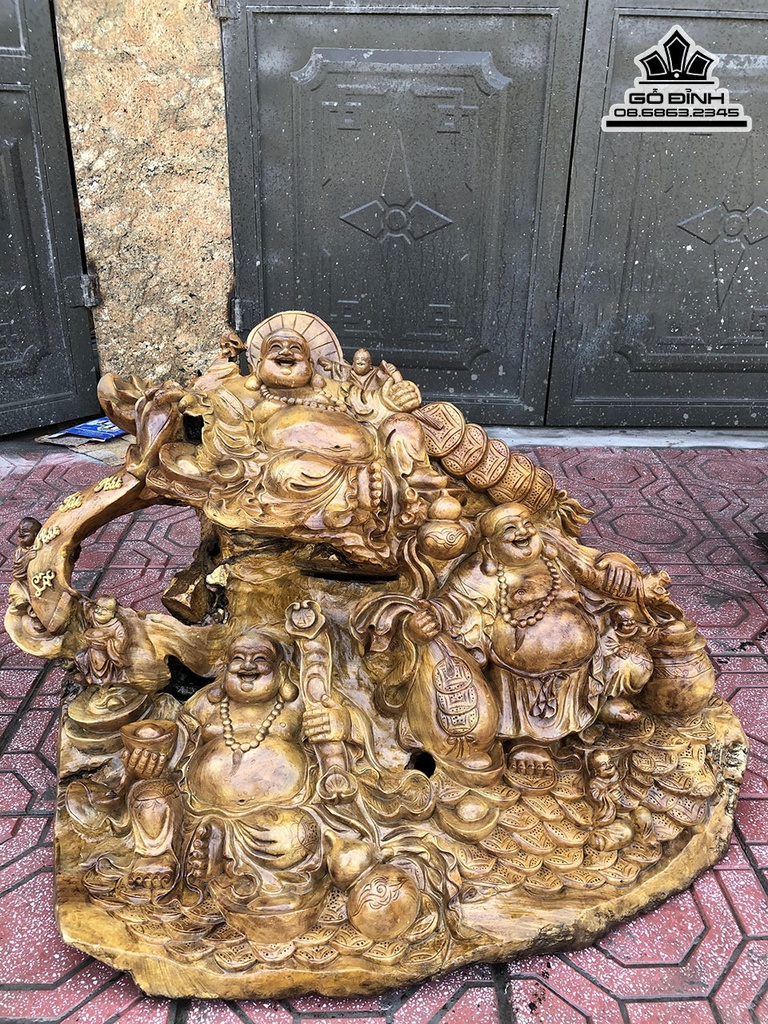 Tượng Phật Di Lặc Tam Phúc Gỗ Xá Xị (Gù Hương)