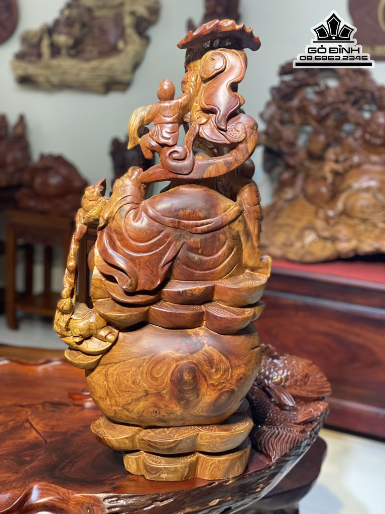 Tượng Phật Di Lặc Tam Phúc Ngồi Bao Tiền Gỗ Hương Cao 70 Ngang 33 Sâu 25 (cm)