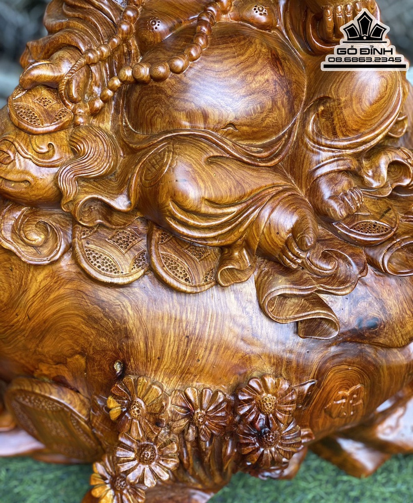 Tượng Phật Di Lặc Tam Phúc Ngồi Bao Tiền Gỗ Hương Ta Cao 40 Ngang 54 Sâu 28 (cm)