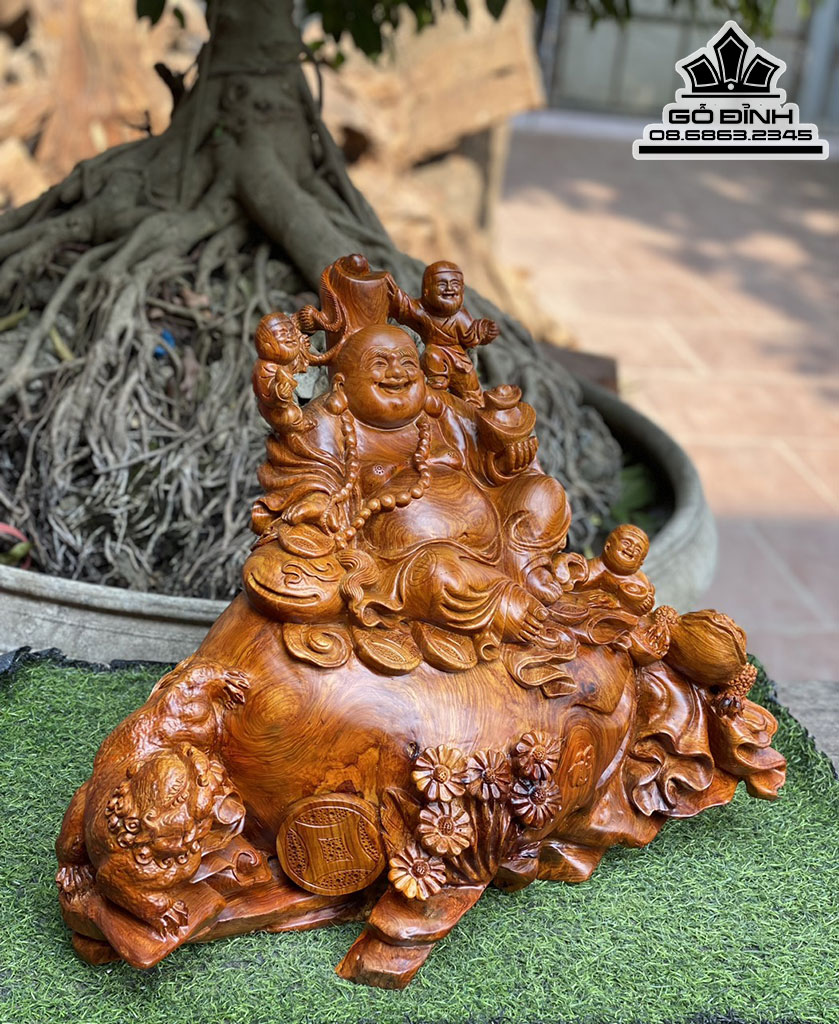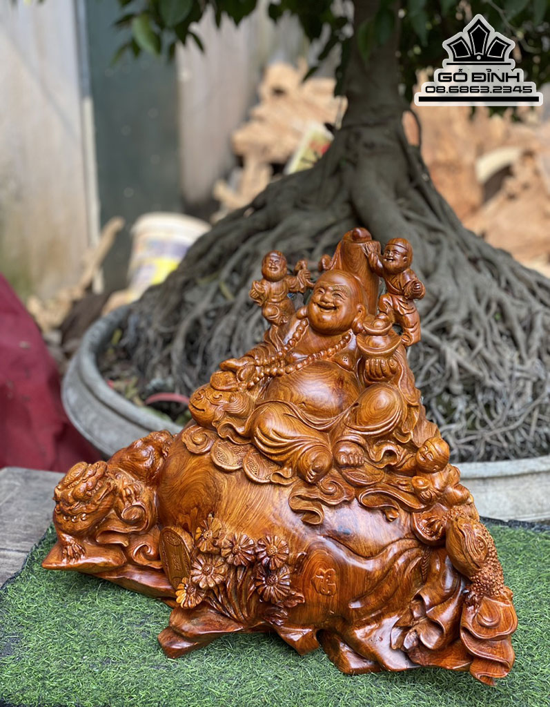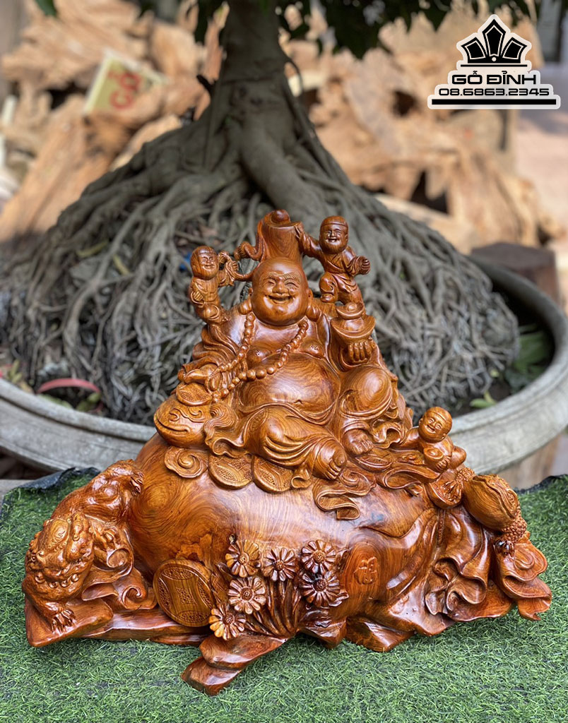 Tượng Phật Di Lặc Tam Phúc Ngồi Bao Tiền Gỗ Hương Ta