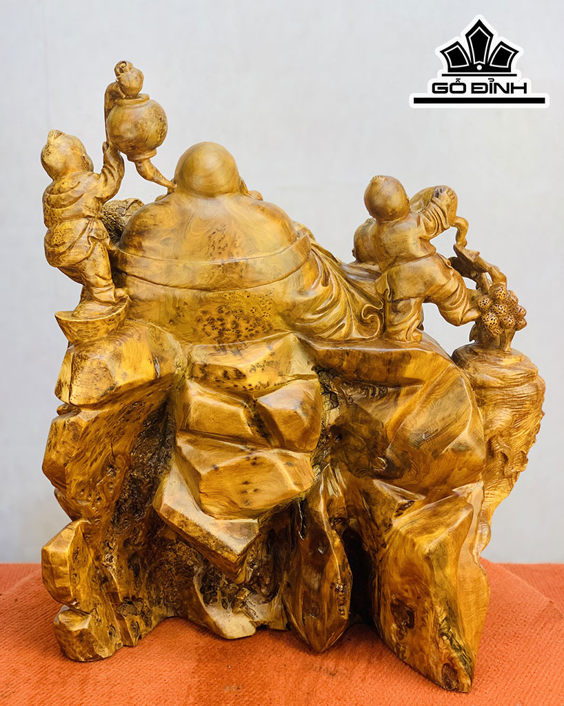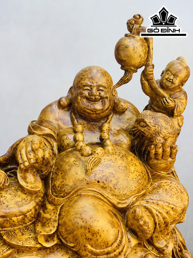 Tượng Phật Di Lặc Tam Phúc Ngồi Bao Tiền Gỗ Nu Ngọc Am Cao 56 Ngang 52 Sâu 30 (cm)