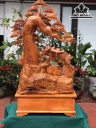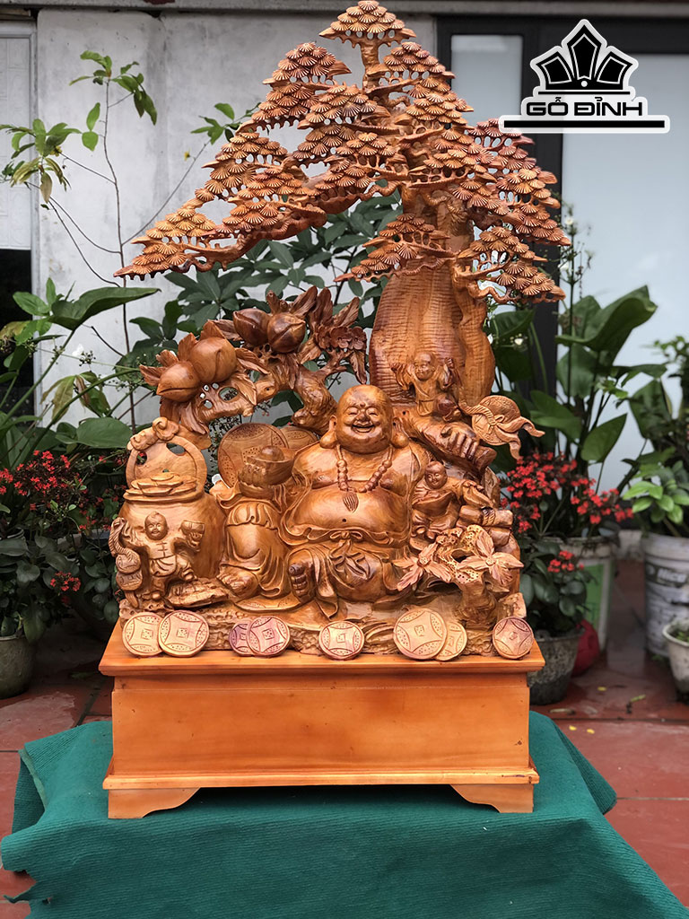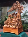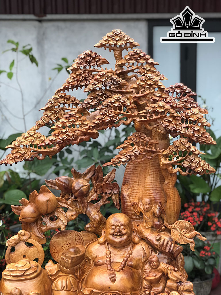 Tượng Phật Di Lặc Tam Phúc Ngồi Gốc Tùng Gỗ Hương Cao 128 Ngang 68 Sâu 47 (cm)