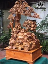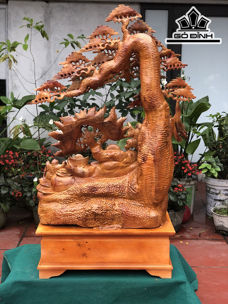 Tượng Phật Di Lặc Tam Phúc Ngồi Gốc Tùng Gỗ Hương Cao 131 Ngang 68 Sâu 47 (cm)