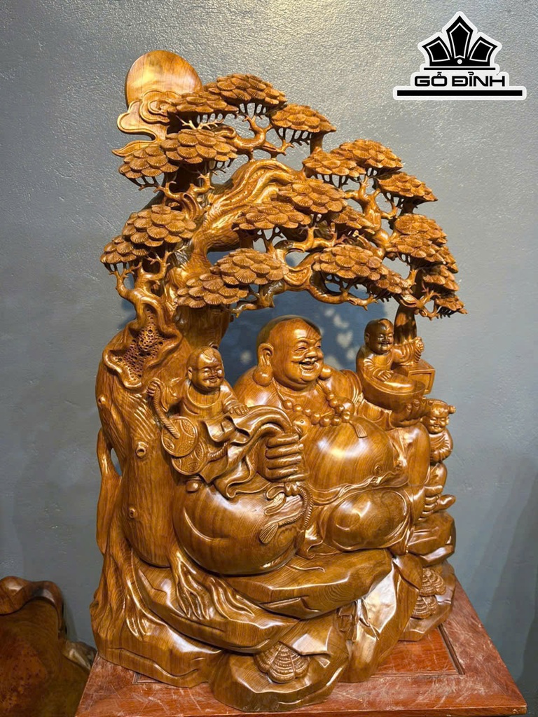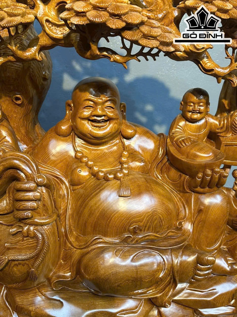 Tượng Phật Di Lặc Tam Phúc Ngồi Tùng Gỗ Ngọc Am Cao 86 Ngang 57 Sâu 30 (cm)