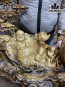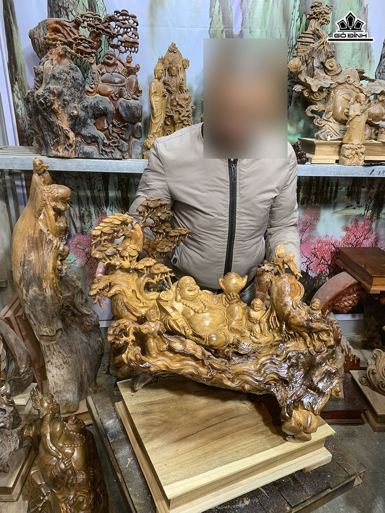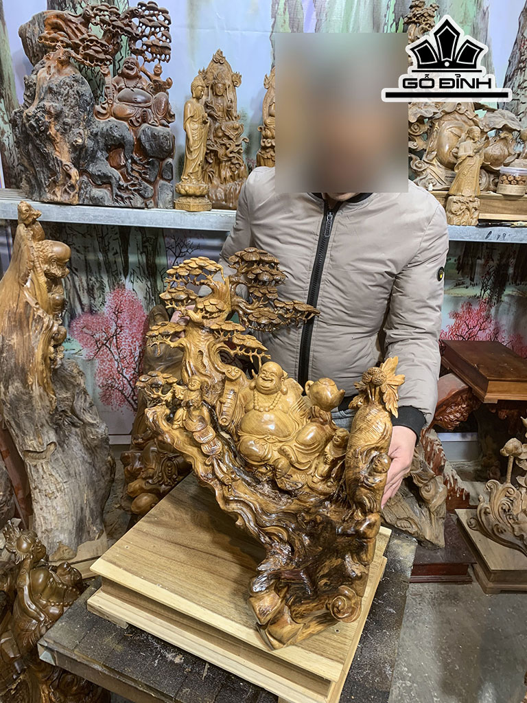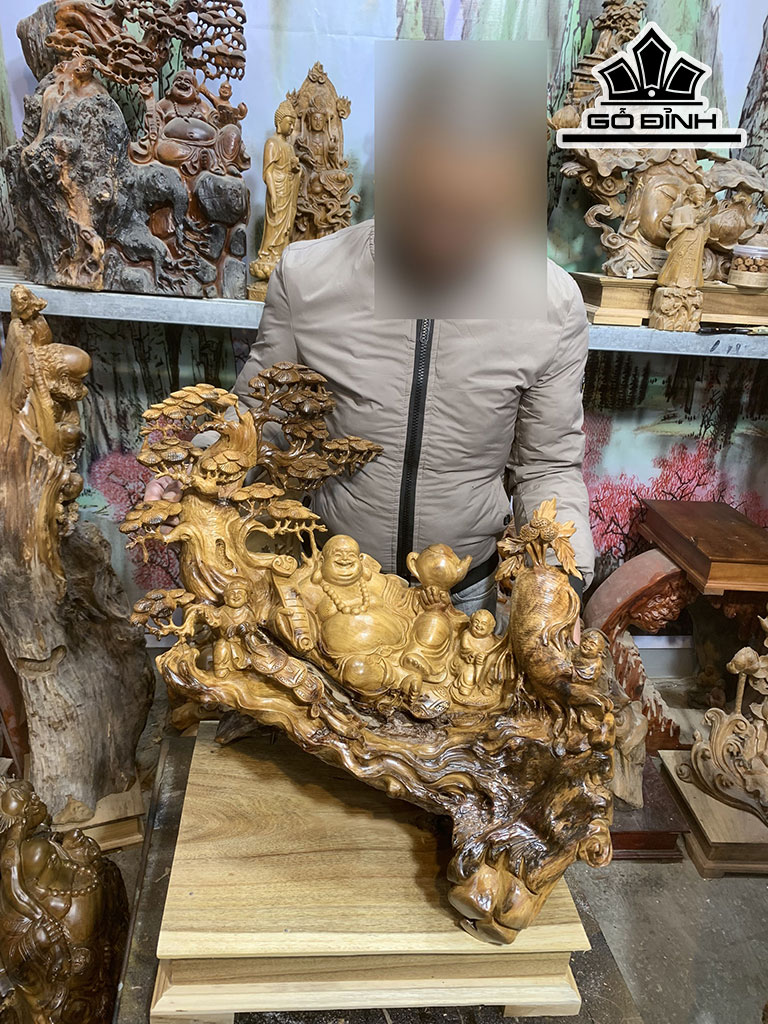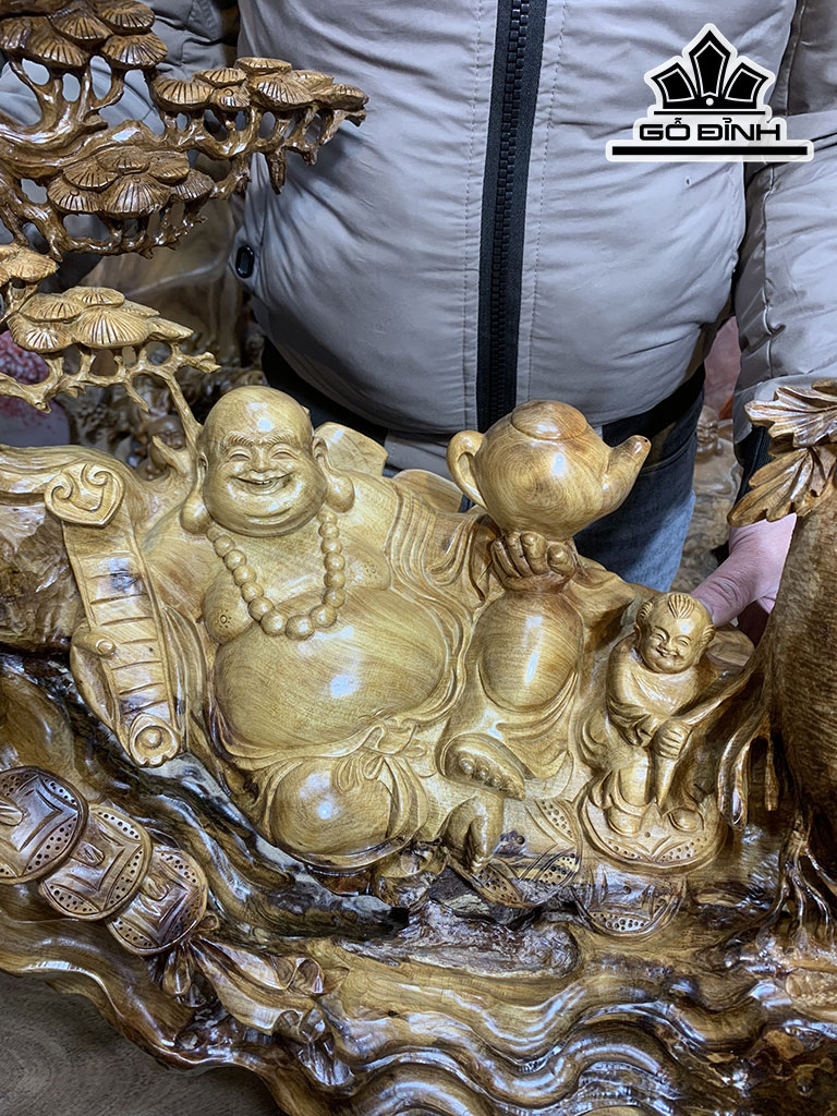 Tượng Phật Di Lặc Tam Phúc Ngự Gốc Tùng Gỗ Bách Xanh Cao Cả Kỷ 65 Ngang 68 Sâu 40 (cm)