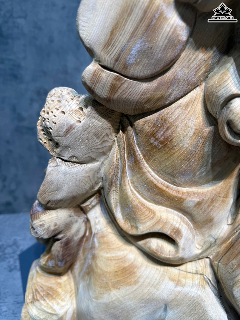 Tượng Phật Di Lặc Tam Phúc Ngự Gốc Tùng Gỗ Ngọc Am Cao 88 Ngang 66 Sâu 50 (cm) - 70kg