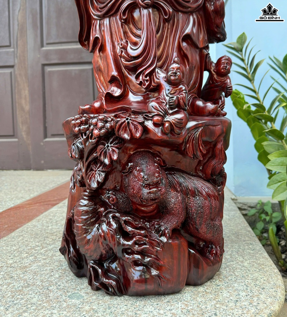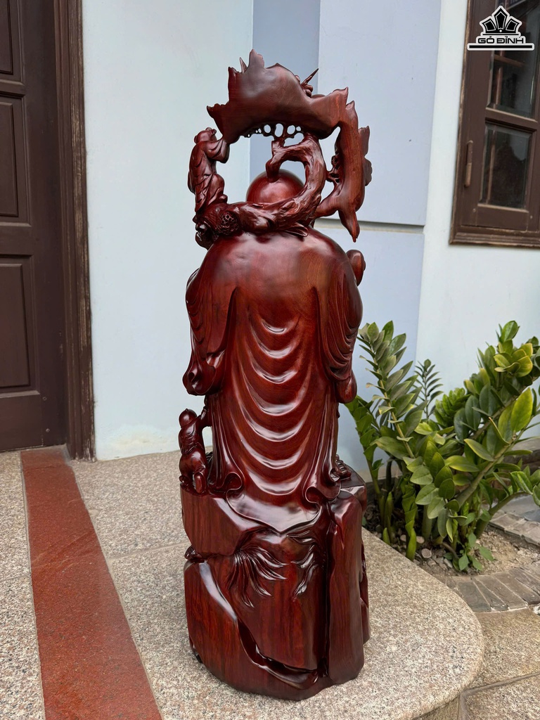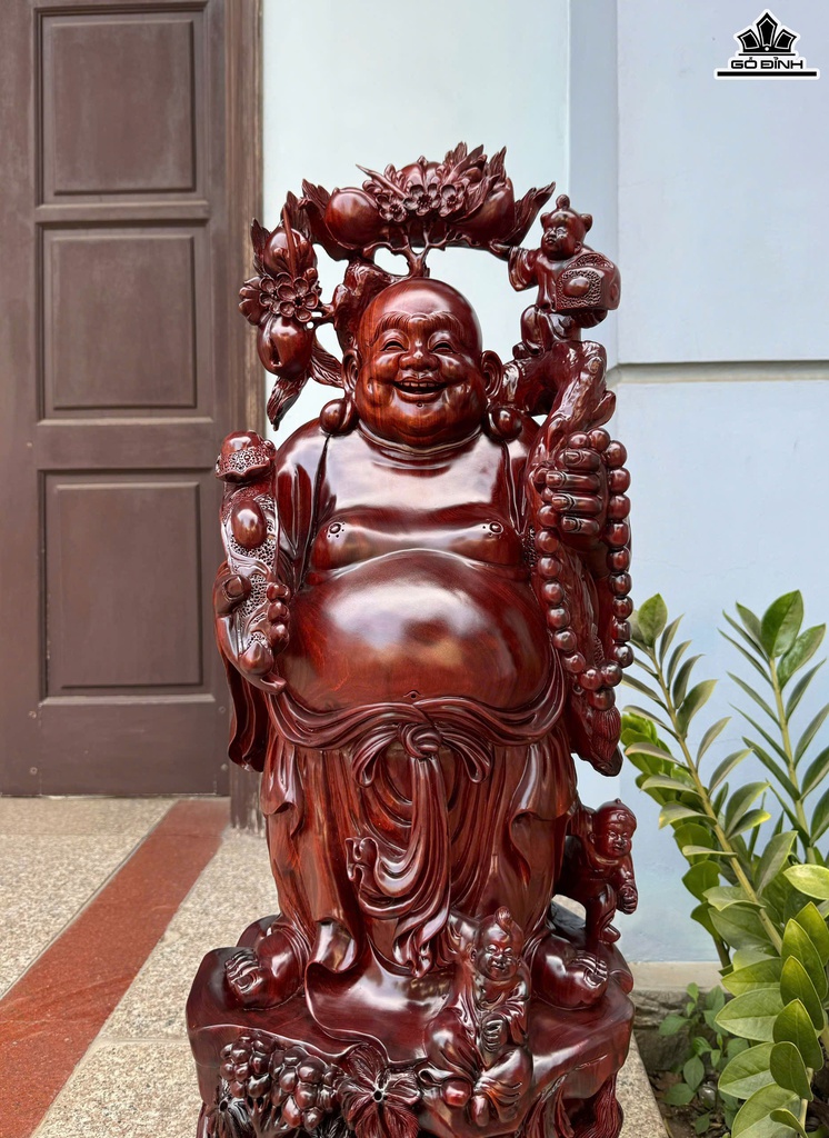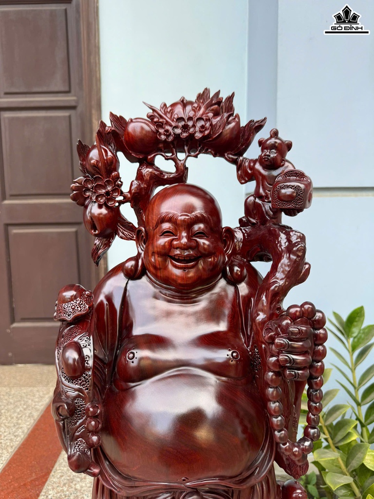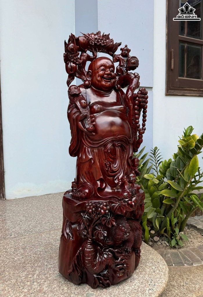 Tượng Phật Di Lặc Tam Phúc Thuần Nghê Gỗ Tử Đàn Cao 93 Ngang 31 Sâu 30 (cm)