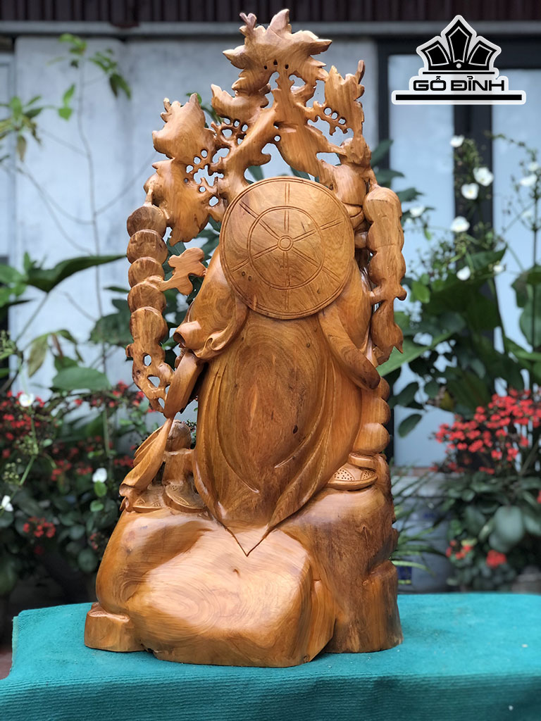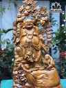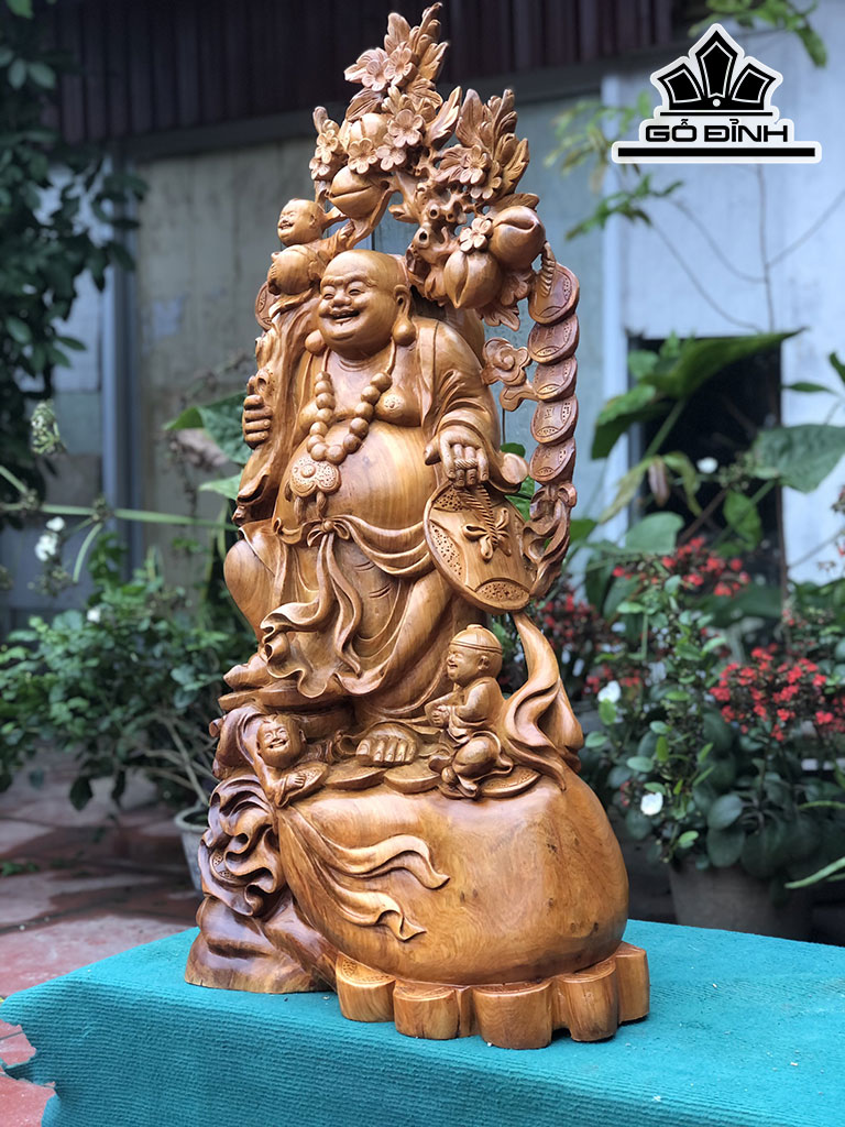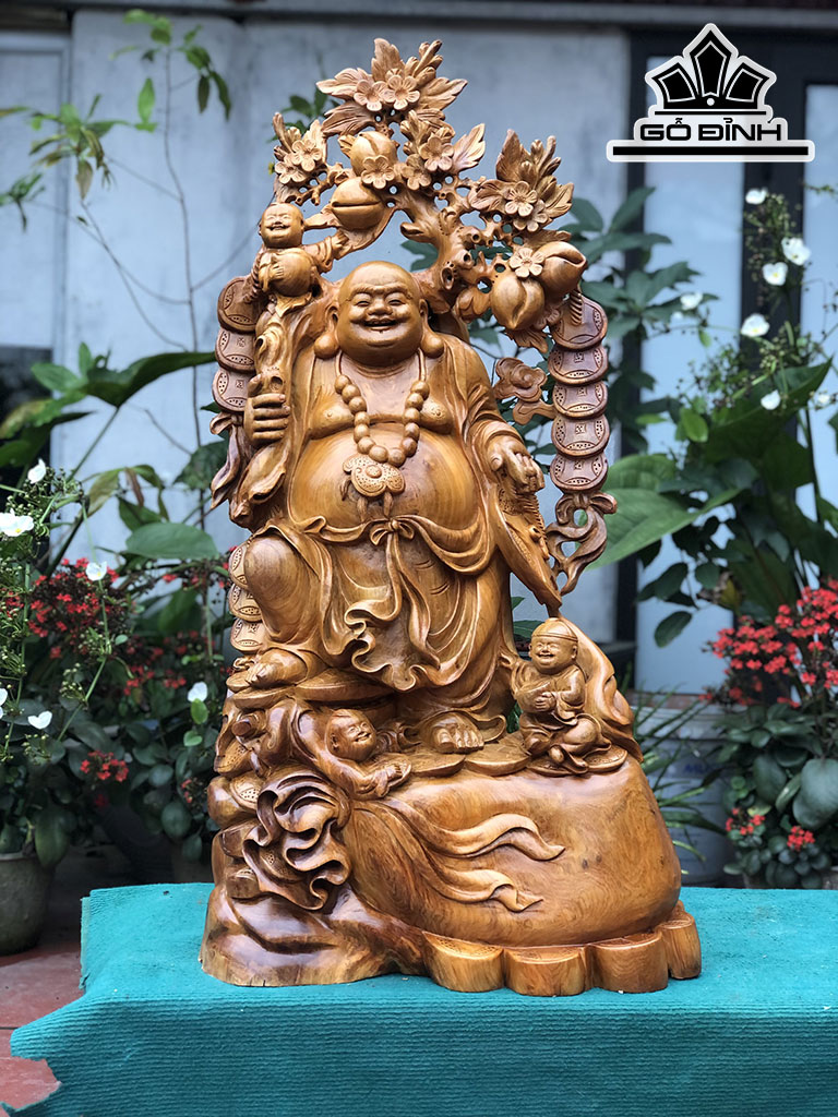 Tượng Phật Di Lặc Tam Phúc Vác Đào Gỗ Hương Cao 93 Ngang 50 Sâu 28 (cm)