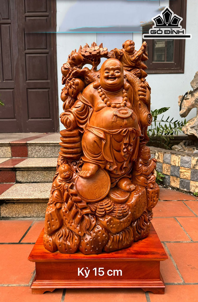 Tượng Phật Di Lặc Tam Phúc Vác Đào Gỗ Ngọc Am Cao 97 Ngang 50 Sâu 27 (cm)