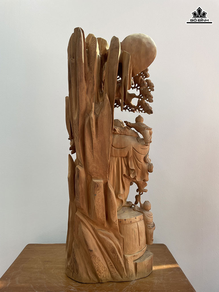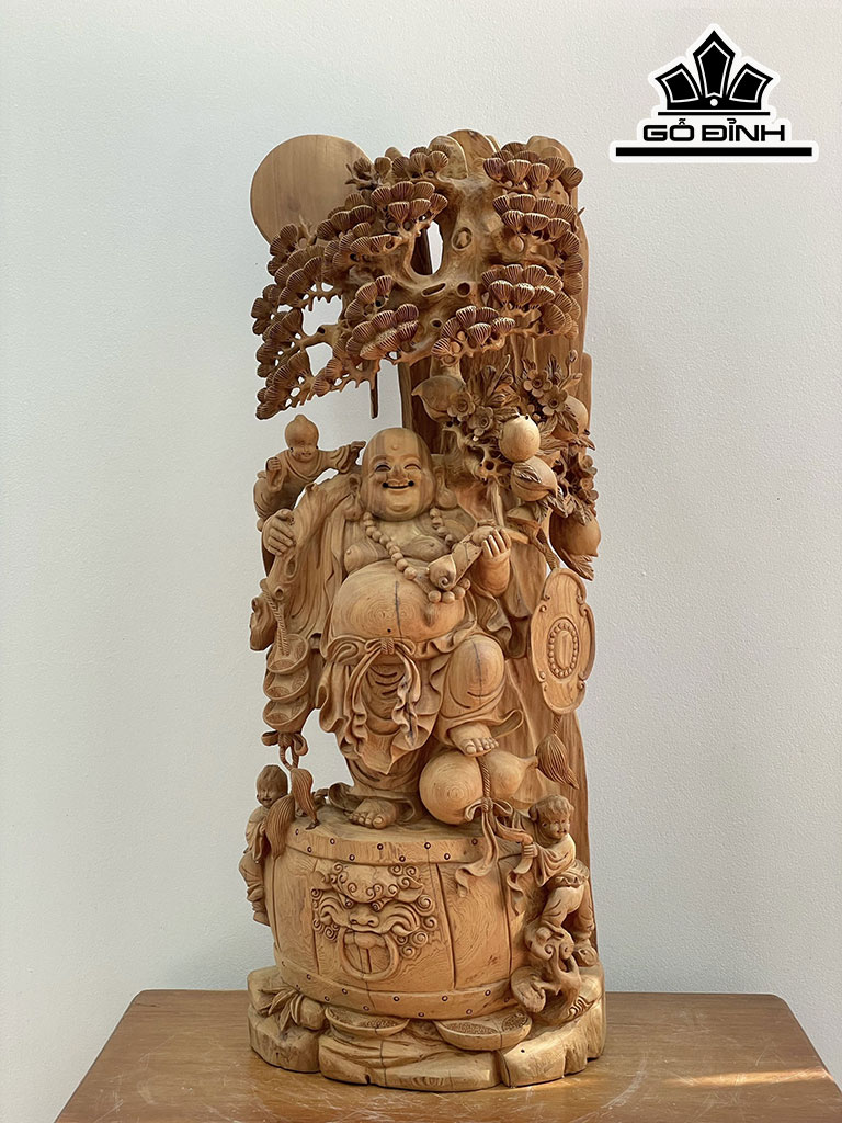 Tượng Phật Di Lặc Tam Phúc Vác Đào Gỗ Ngọc Am Cao 98 Ngang 36 Sâu 28 (cm)