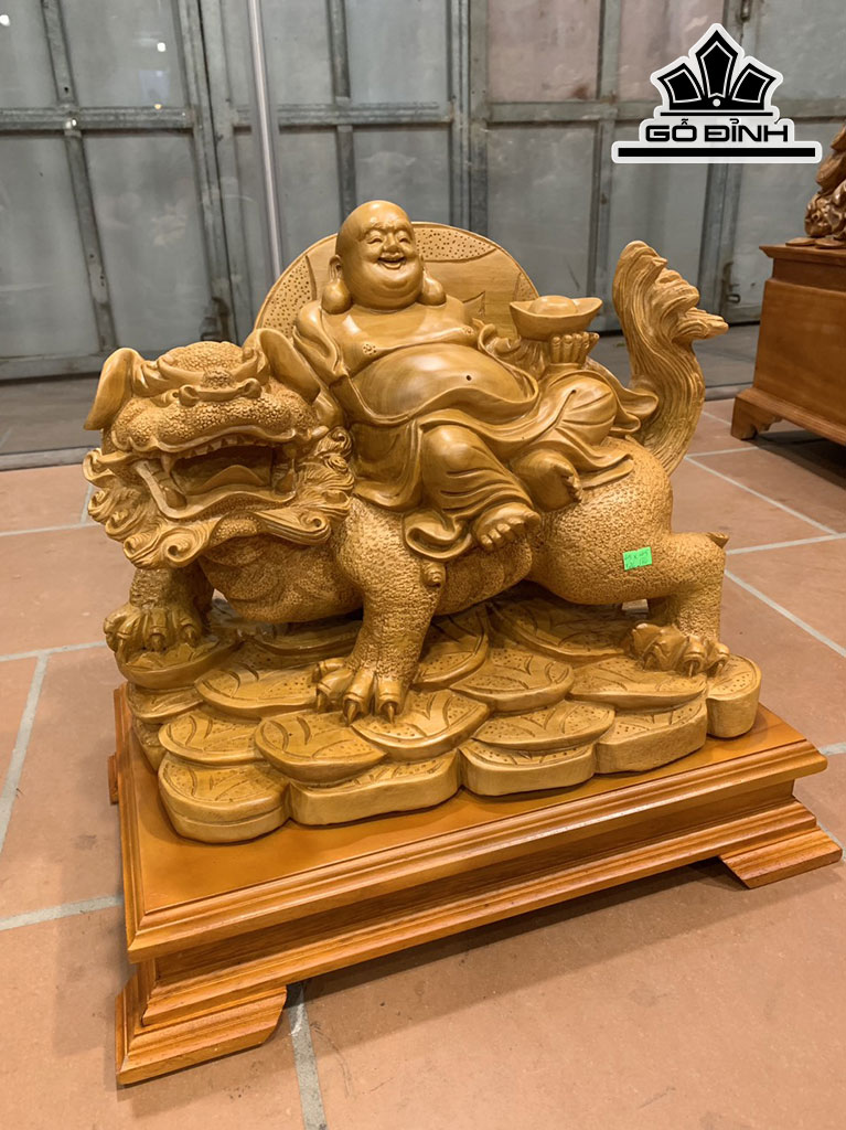 Tượng Phật Di Lặc Thuần Nghê Gỗ Xá Xị Cao Cả Kỷ 45 Ngang 45 Sâu 26 (cm)