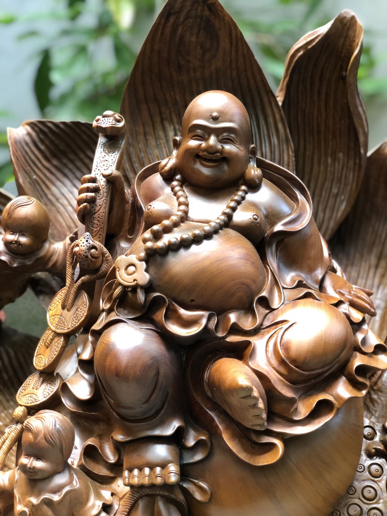 Tượng Phật Di Lặc Tọa Đài Sen Gỗ Bách Xanh