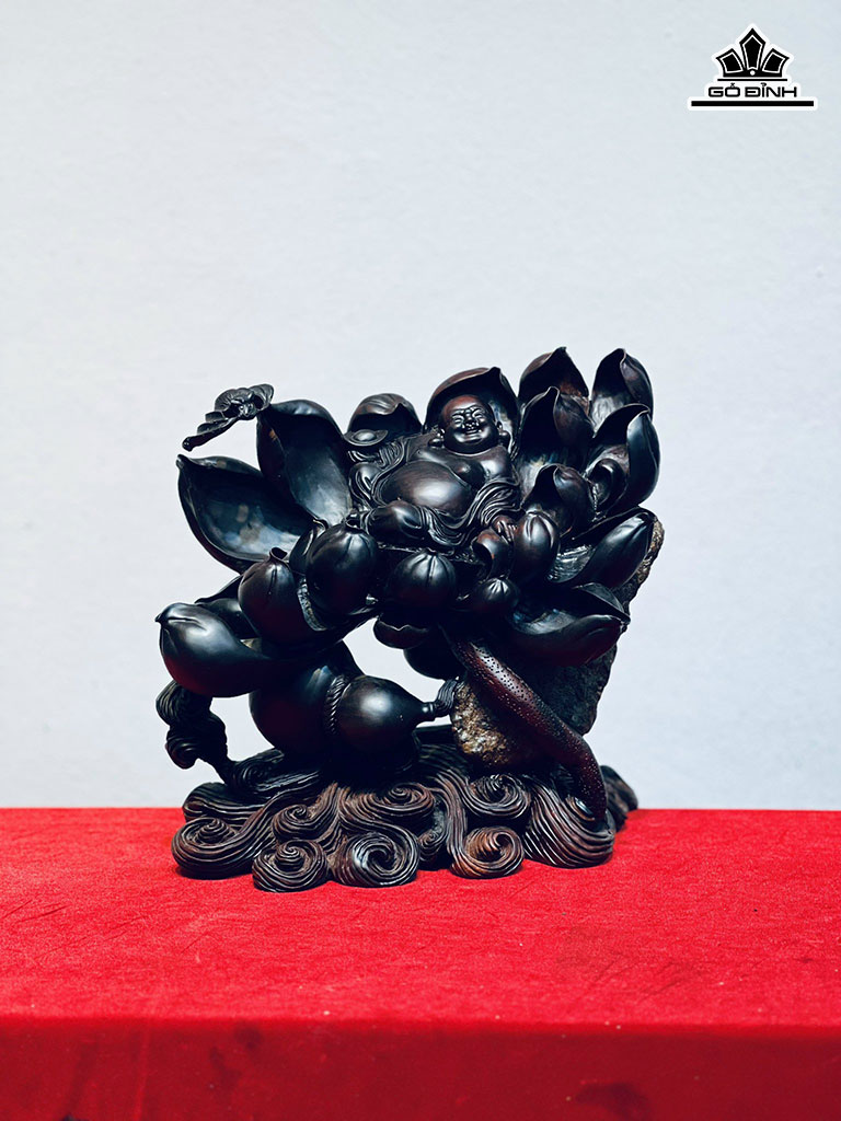 Tượng Phật Di Lặc Tọa Đài Sen Gỗ Trắc Cao 28 Ngang 26 Sâu 20 (cm)
