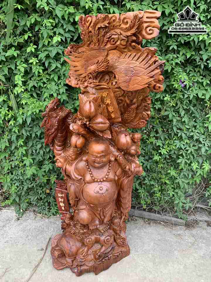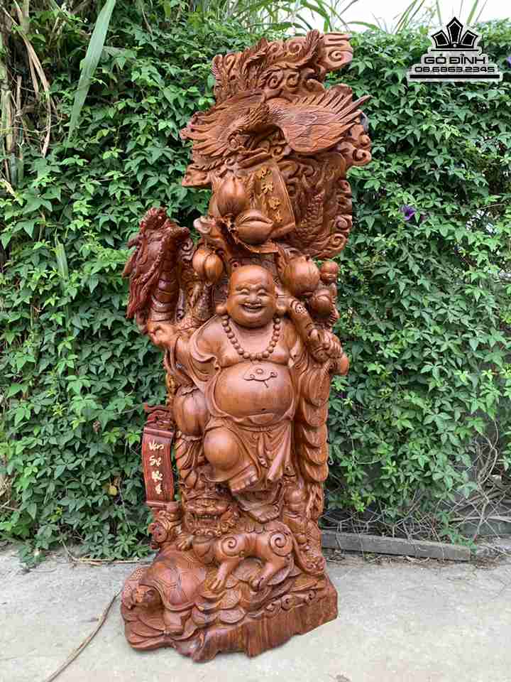 Tượng Phật Di Lặc Tứ Linh Gỗ Hương Cao 148 Rộng 63 Sâu 40 (cm)