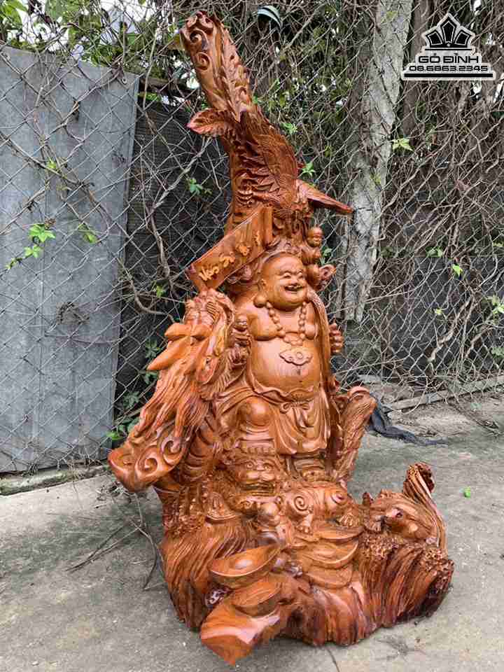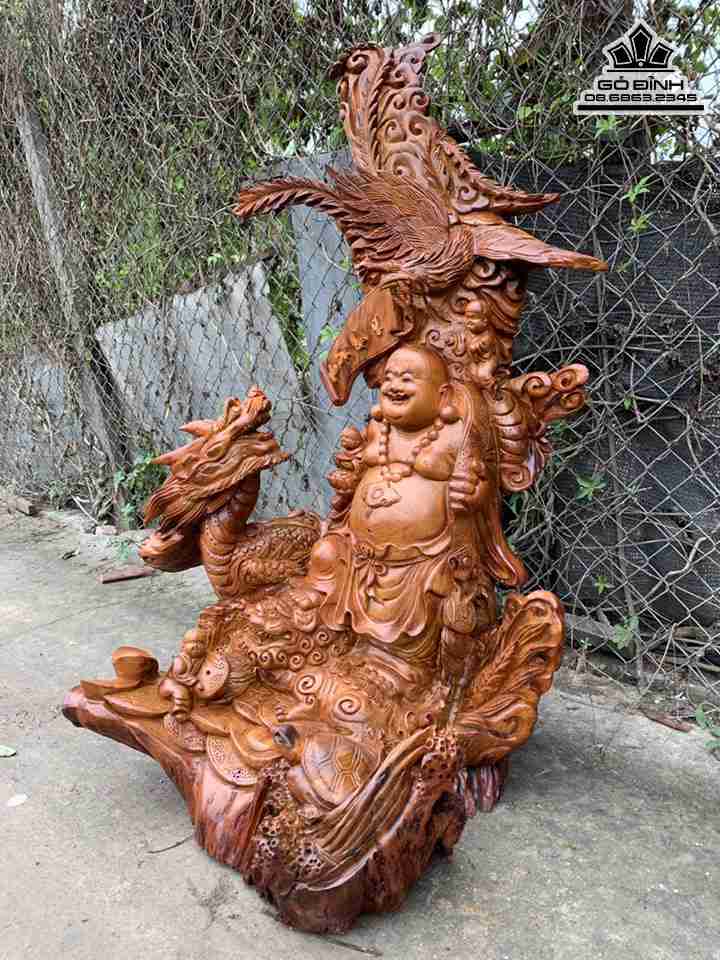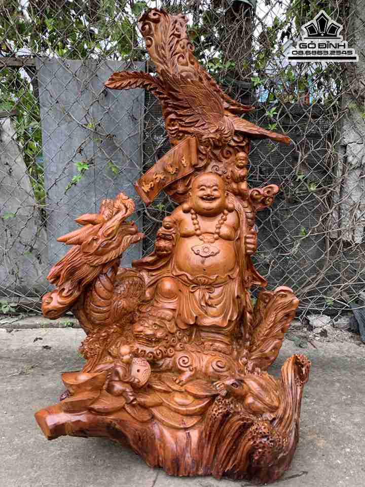 Tượng Phật Di Lặc Tứ Linh Gỗ Hương Cao 118 Rộng 65 Sâu 41 (cm)
