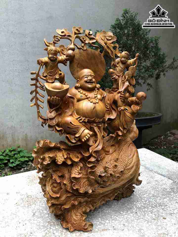 Tượng Phật Di Lặc Đứng Bắp Cải Gỗ Xá Xị ( Gù Hương ) Cao 67 Ngang 43 Sâu 17 (cm)