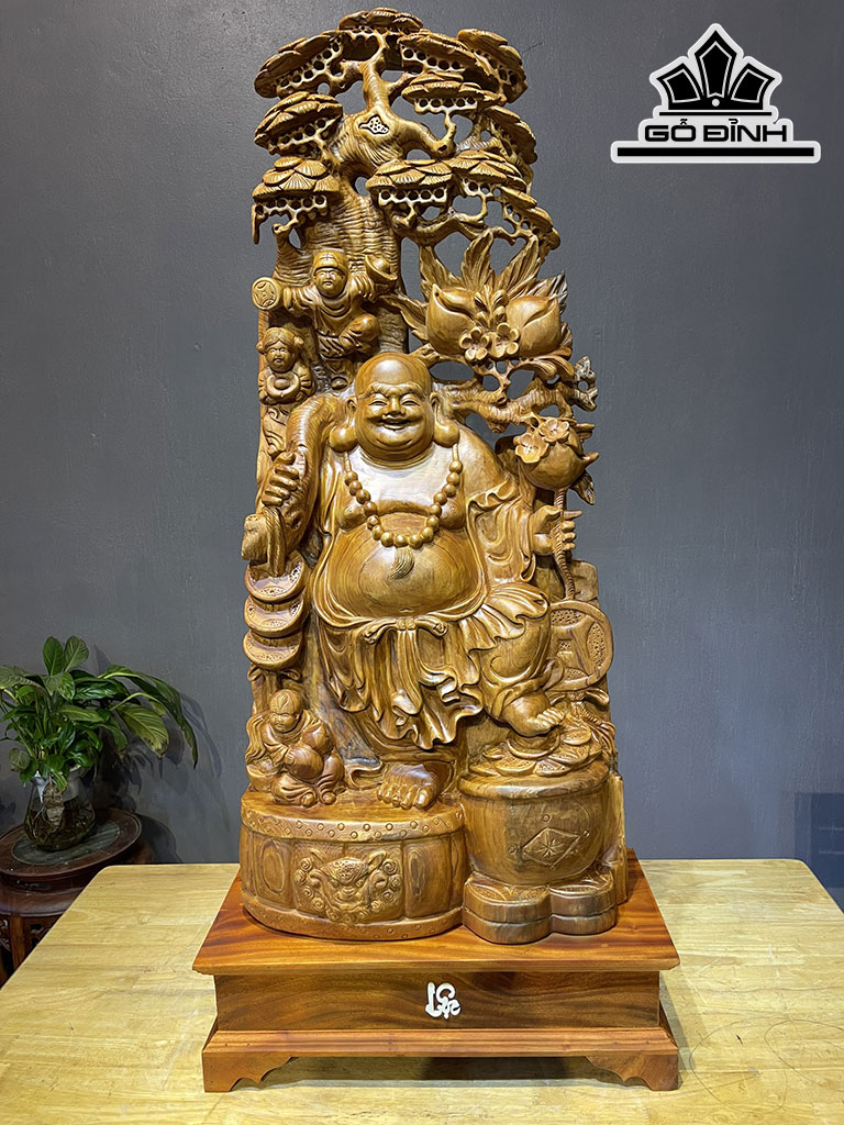 Tượng Phật Di Lặc Đứng Cây Tùng Gỗ Ngọc Am Cao 103 Ngang 48 Sâu 20 (cm)