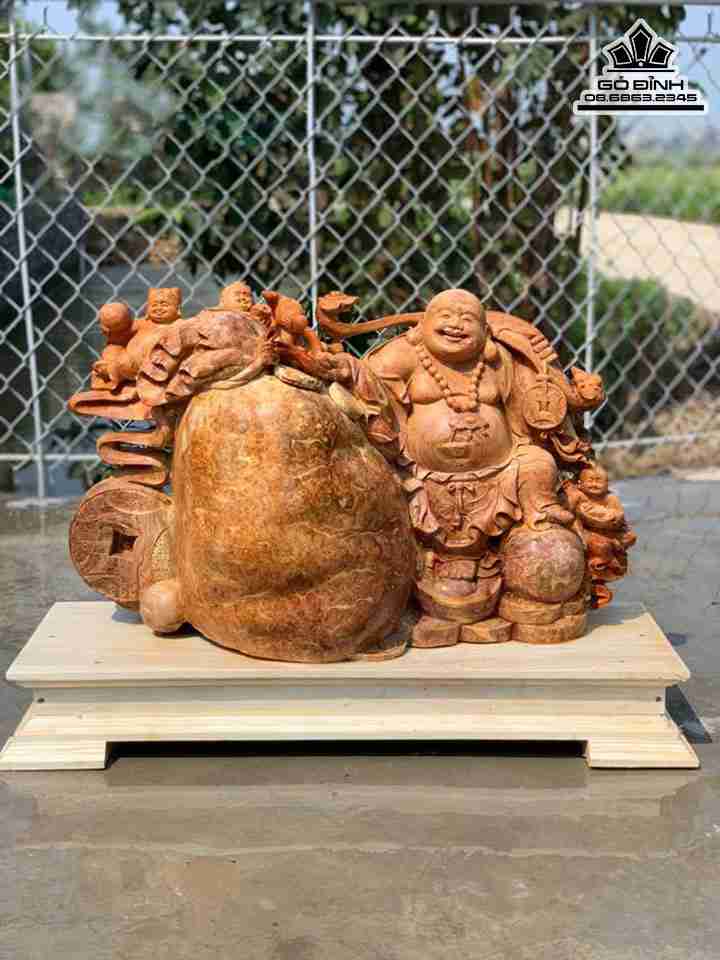 Tượng Phật Di Lặc Đứng Chum Tiền Gỗ Nu Hương Cao 40 Ngang 66 Sâu 28 (cm)