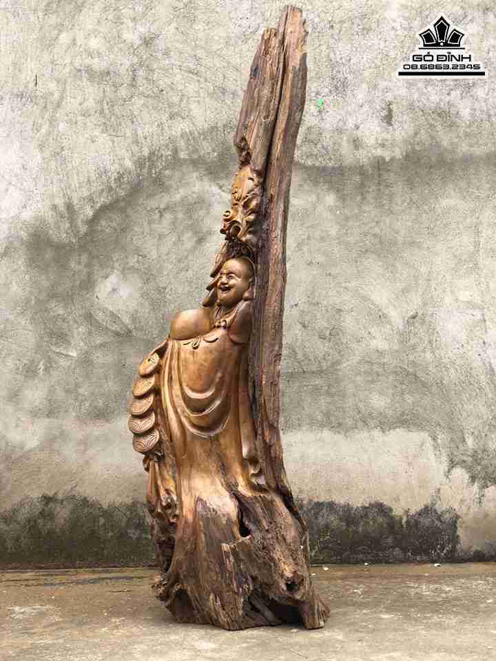 Tượng Phật Di Lặc Đứng Gỗ Bách Xanh Cao 139 Ngang 46 Sâu 33 (cm)
