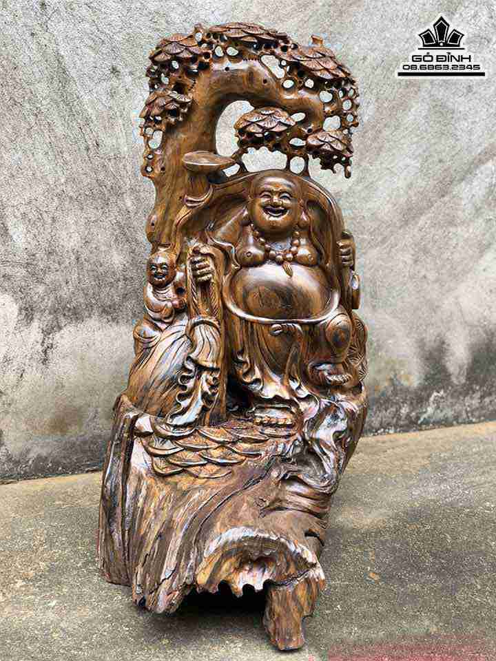 Tượng Phật Di Lặc Đứng Gốc Tùng Gỗ Bách Xanh Cao 58 Rộng 29 Dày 36 (cm)