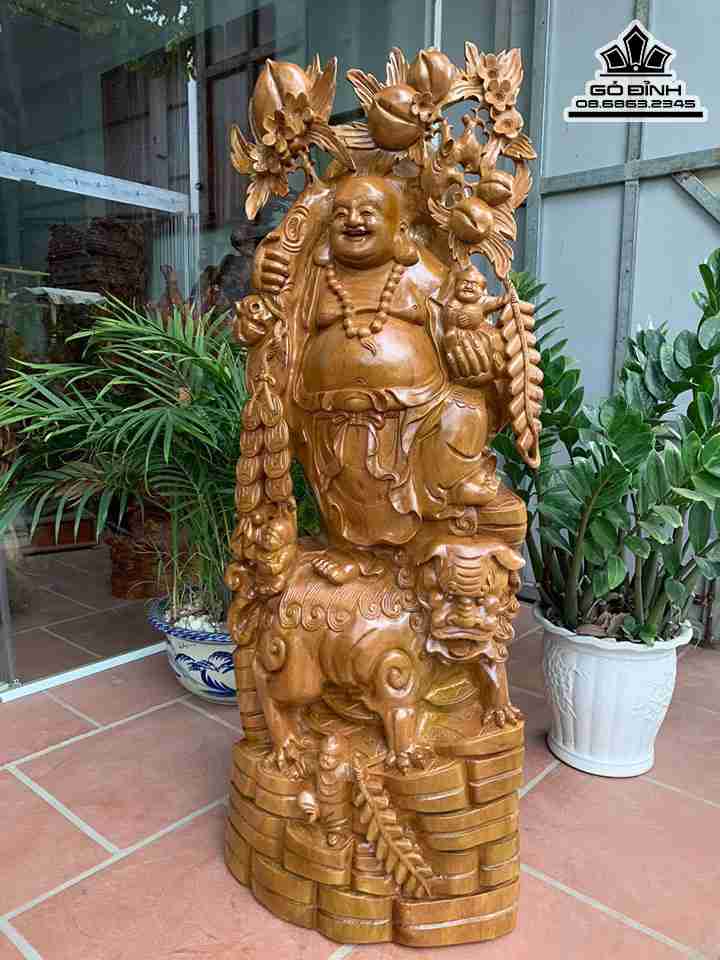 Tượng Phật Di Lặc Đứng Nghê Gỗ Xá Xị ( Gù Hương ) Cao 125 Ngang 49 Sâu 30 (cm)