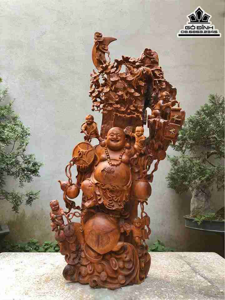 Tượng Phật Di Lặc Đứng Tài Lộc Gỗ Hương Cao 105 Ngang 55 Sâu 20 (cm)