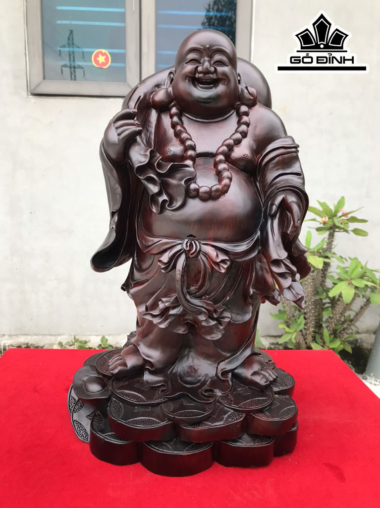 Tượng Phật Di Lặc Vác Bao Tiền Gỗ Trắc Cao 48 Ngang 29 Sâu 20 (cm)