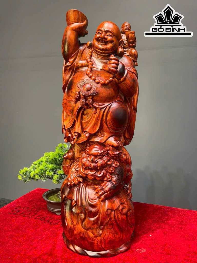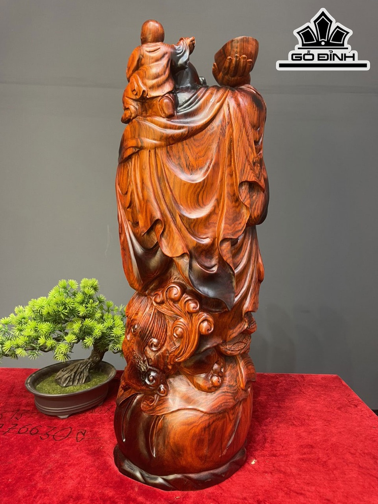 Tượng Phật Di Lặc Vác Bát Vàng Gỗ Trắc Cao 58 Ngang 22 Sâu 21 (cm)