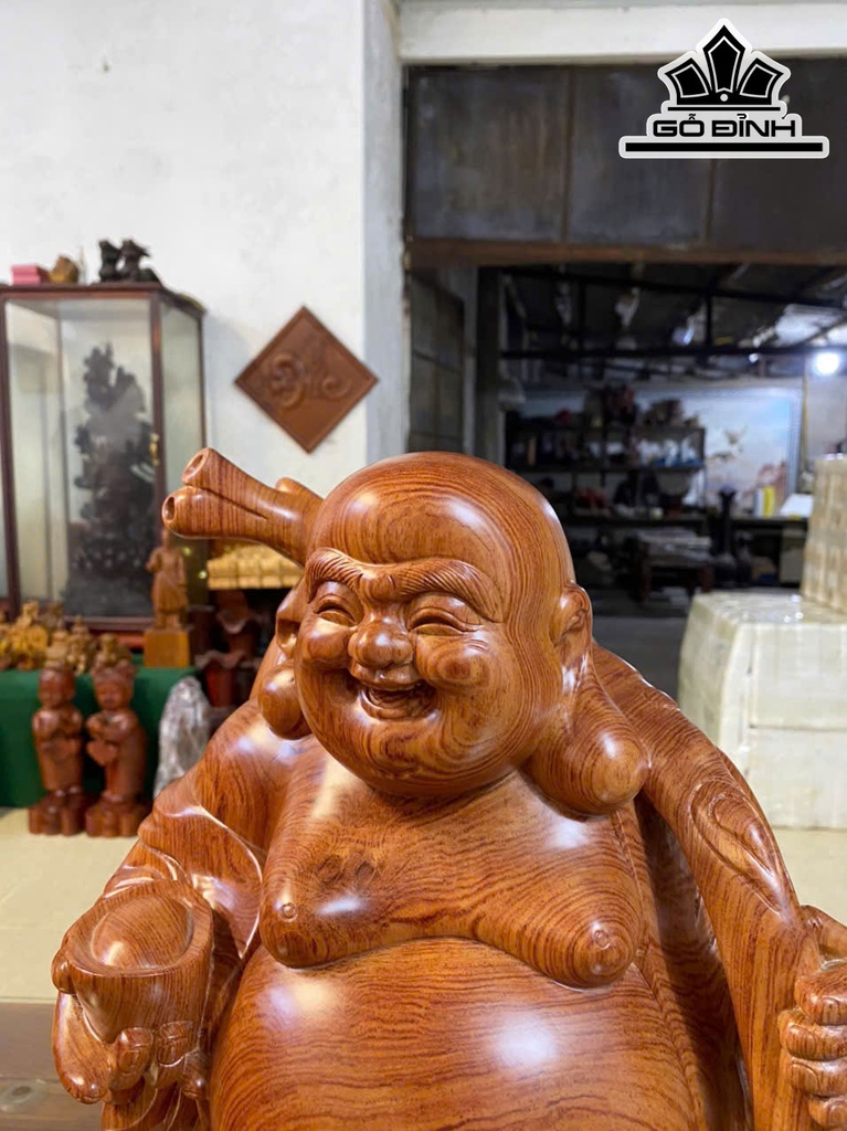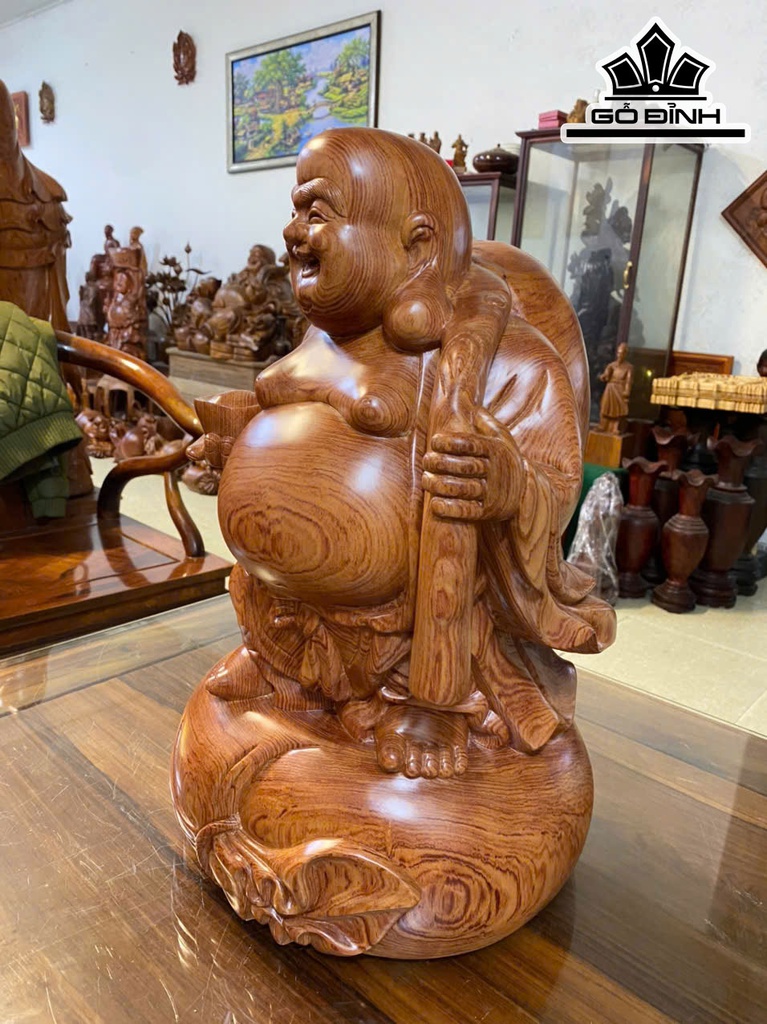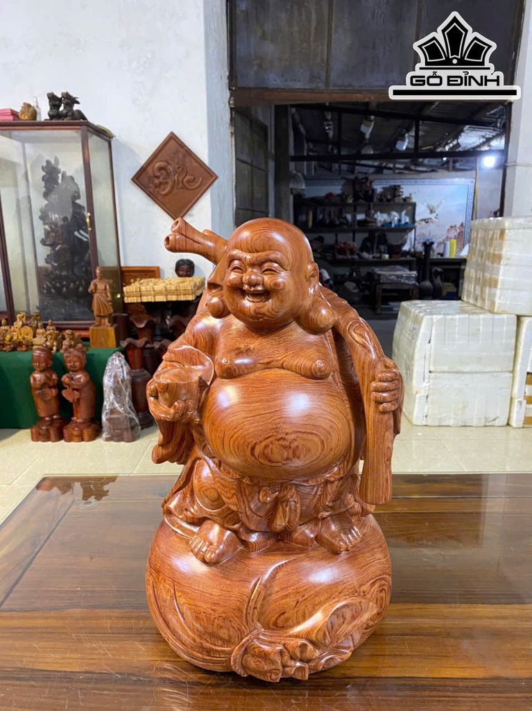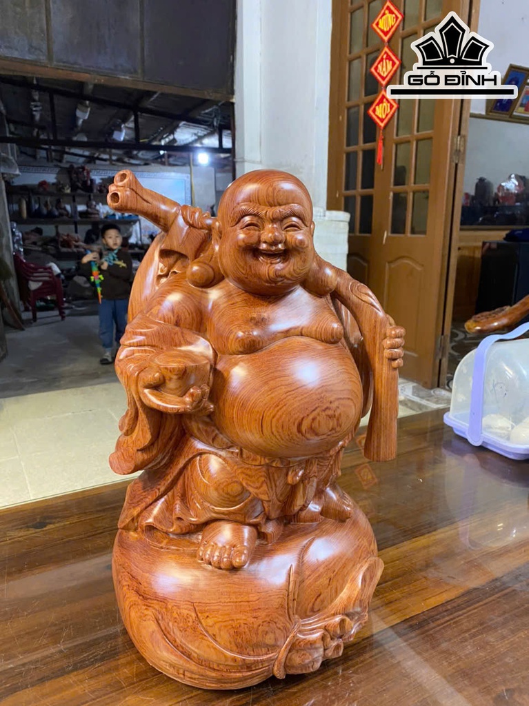 Tượng Phật Di Lặc Vác Bị Tiền Vàng Gỗ Hương Cao 50 Ngang 28 Sâu 26 (cm)