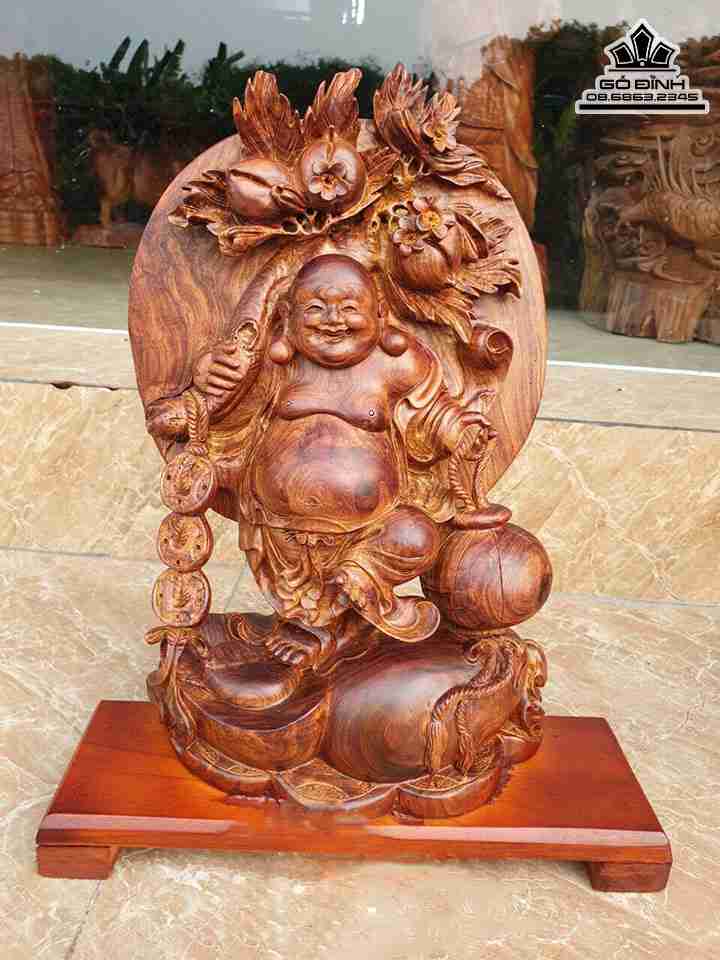 Tượng Phật Di Lặc Vác Cành Đào Gỗ Cẩm Cao 36 Ngang 23 Sâu 10 (cm)