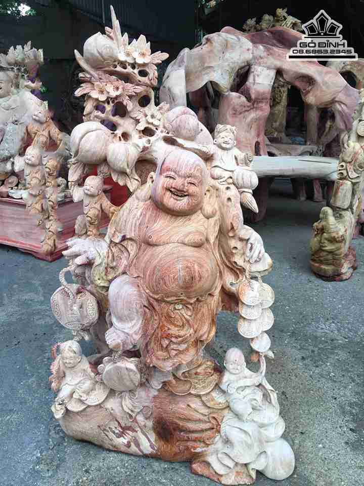 Tượng Phật Di Lặc Vác Cành Đào Gỗ Hương Cao 82 Rộng 48 Dày 33 (cm)