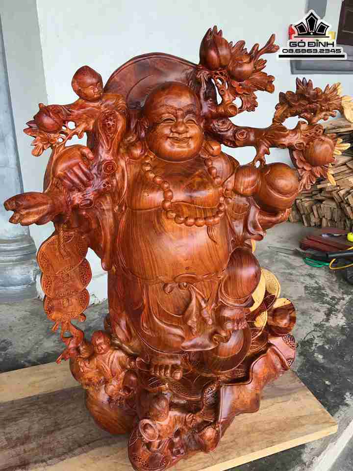 Tượng Phật Di Lặc Vác Cành Đào Gỗ Hương Cao 83 Rộng 62 Dày 36 (cm)