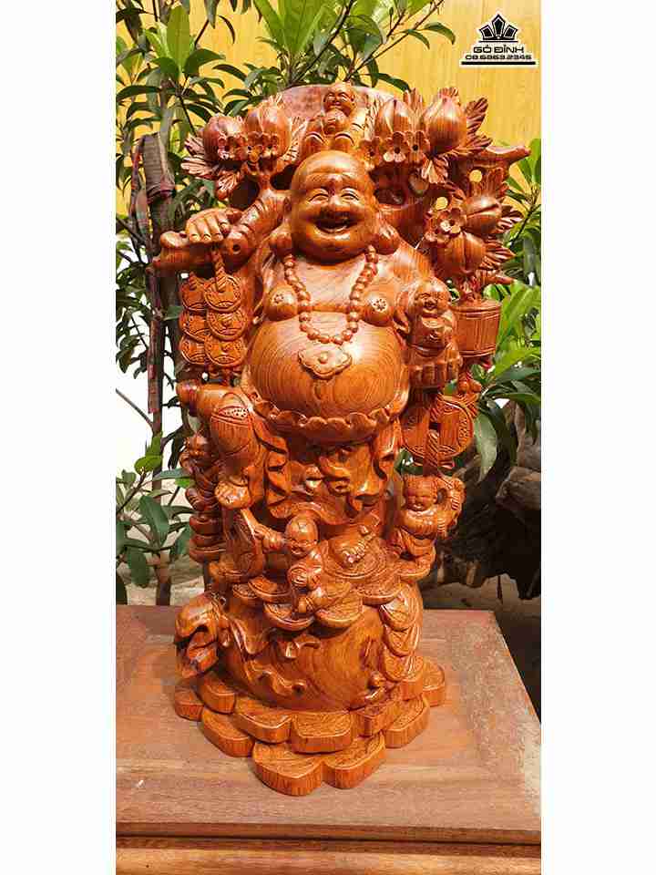 Tượng Phật Di Lặc Vác Cánh Đào Gỗ Hương Cao 60 Ngang 30 Sâu 27 (cm)