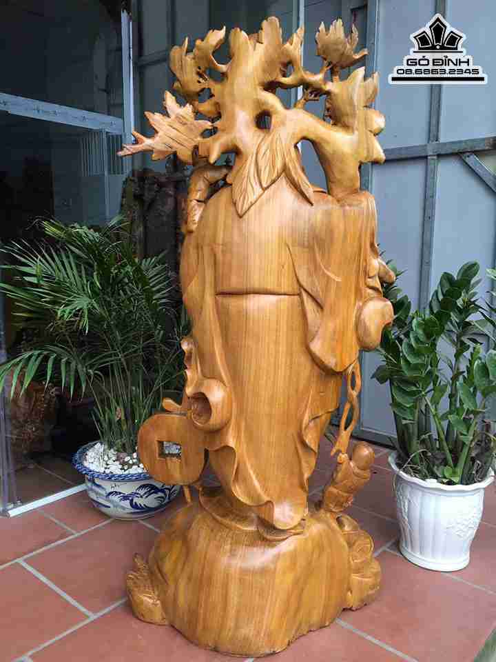 Tượng Phật Di Lặc Vác Cành Đào Gỗ Xá Xị ( Gù Hương ) Cao 151 Ngang 70 Sâu 50 (cm)