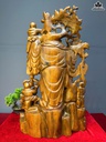 Tượng Phật Di Lặc Vác Cành Đào Gỗ Bách Xanh Cao 80 Ngang 50 Sâu 23 (cm)
